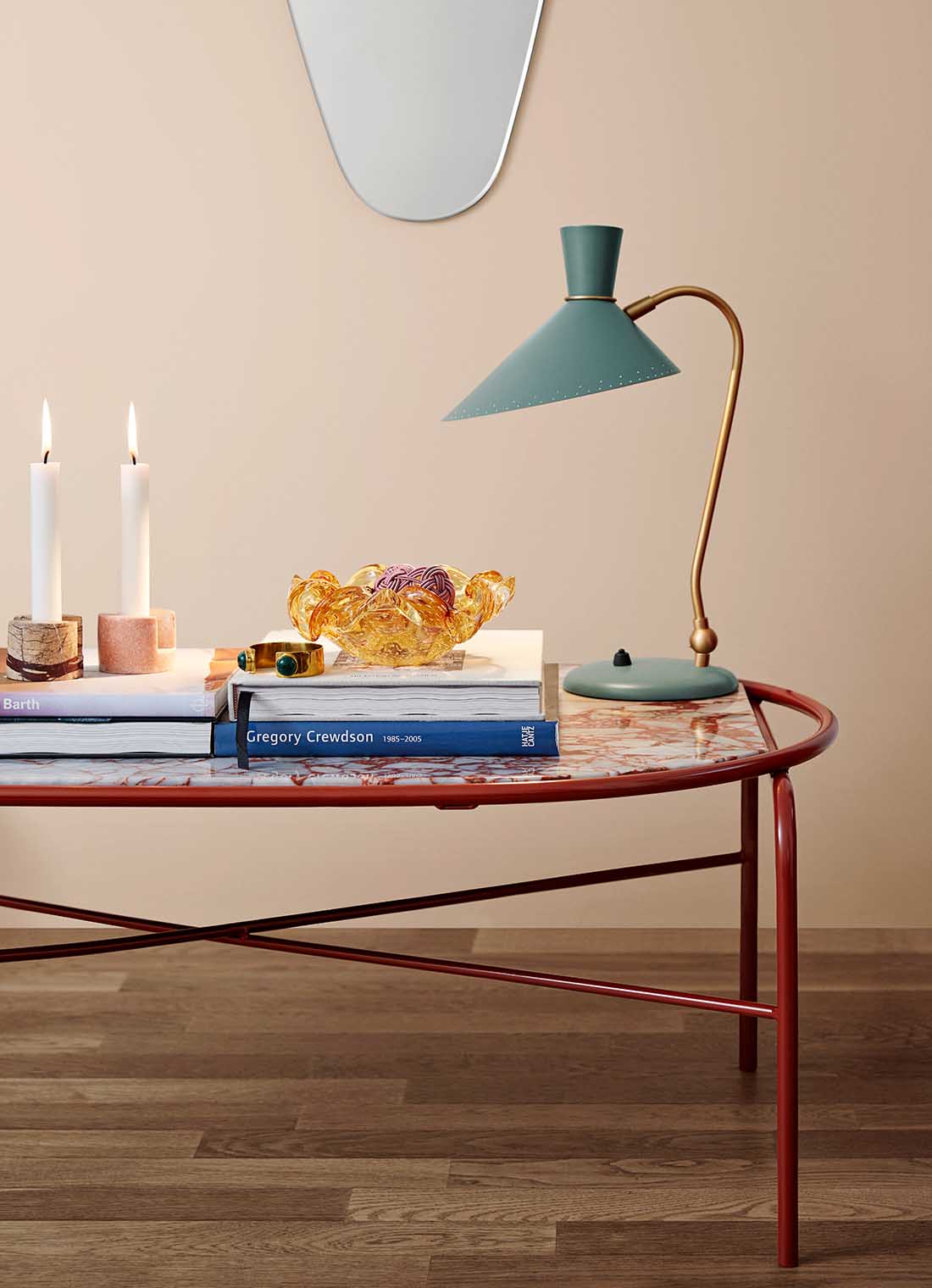 Компактная настольная лампа Warm Nordic Bloom обладает яркой индивидуальностью. Сочетание игривости и чётких линий делает этот предмет интерьера красивым дополнением рабочего стола. Приятным штрихом является визитная карточка дизайнера Svend Aage Holm-Sørensen: характерные отверстия в простом узоре по краю металлического абажура, которые добавляют дополнительное измерение свету.