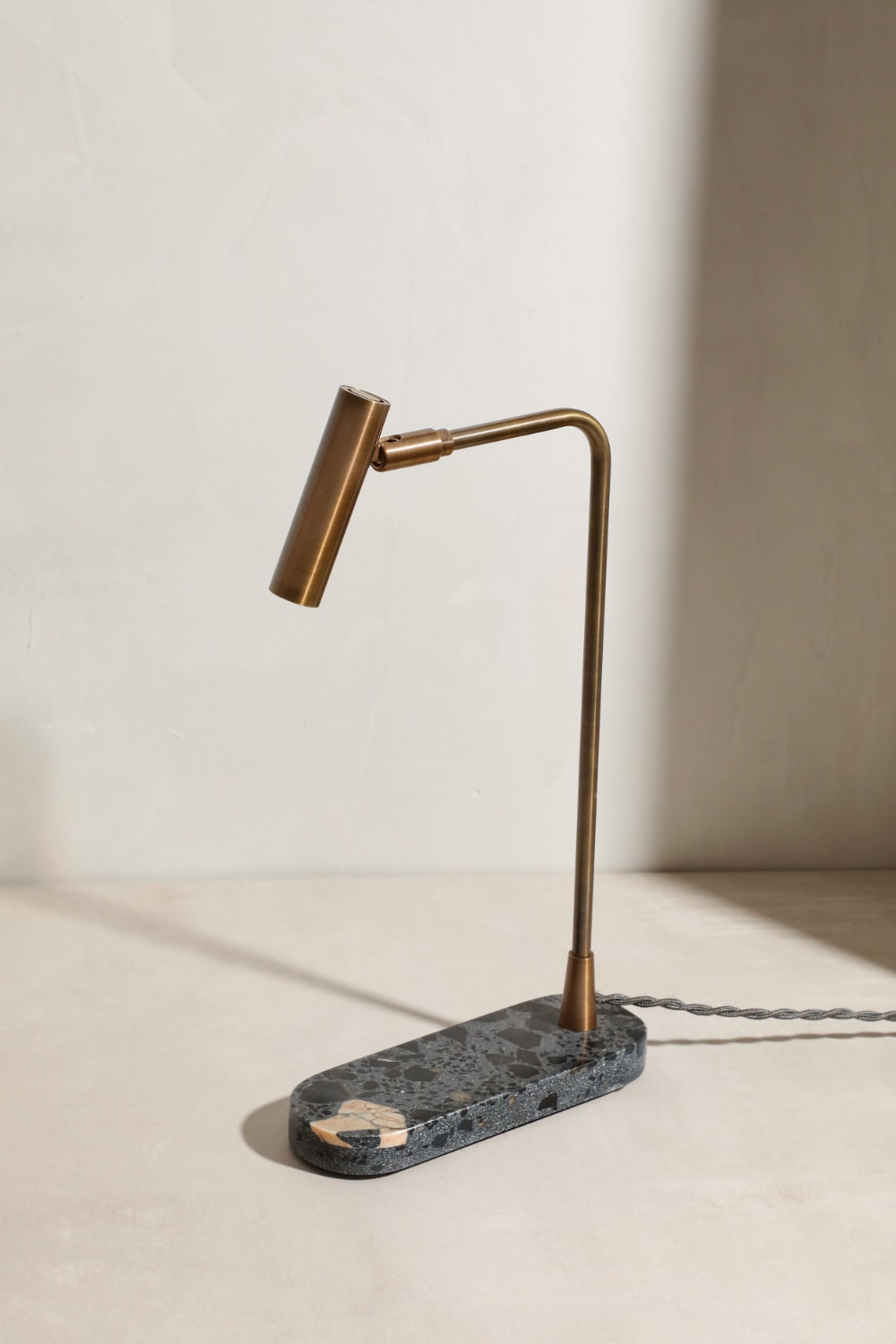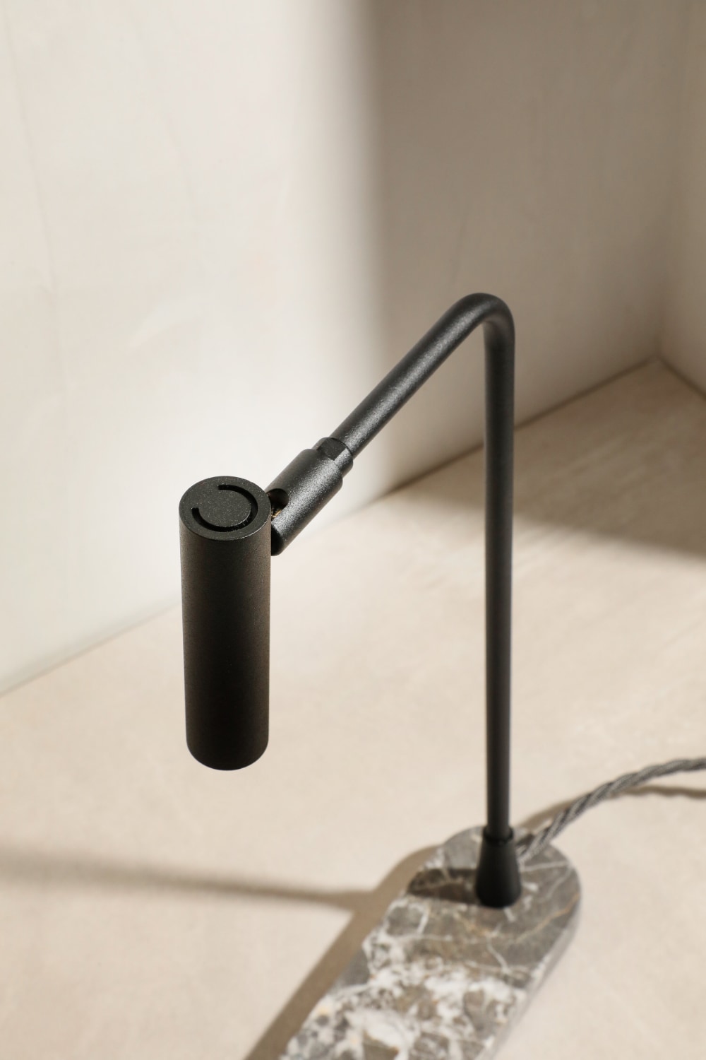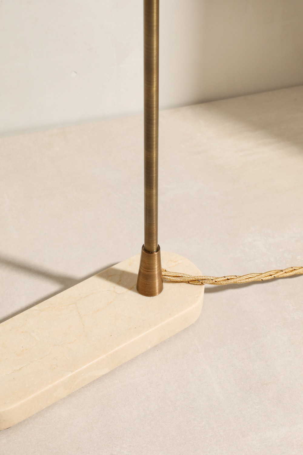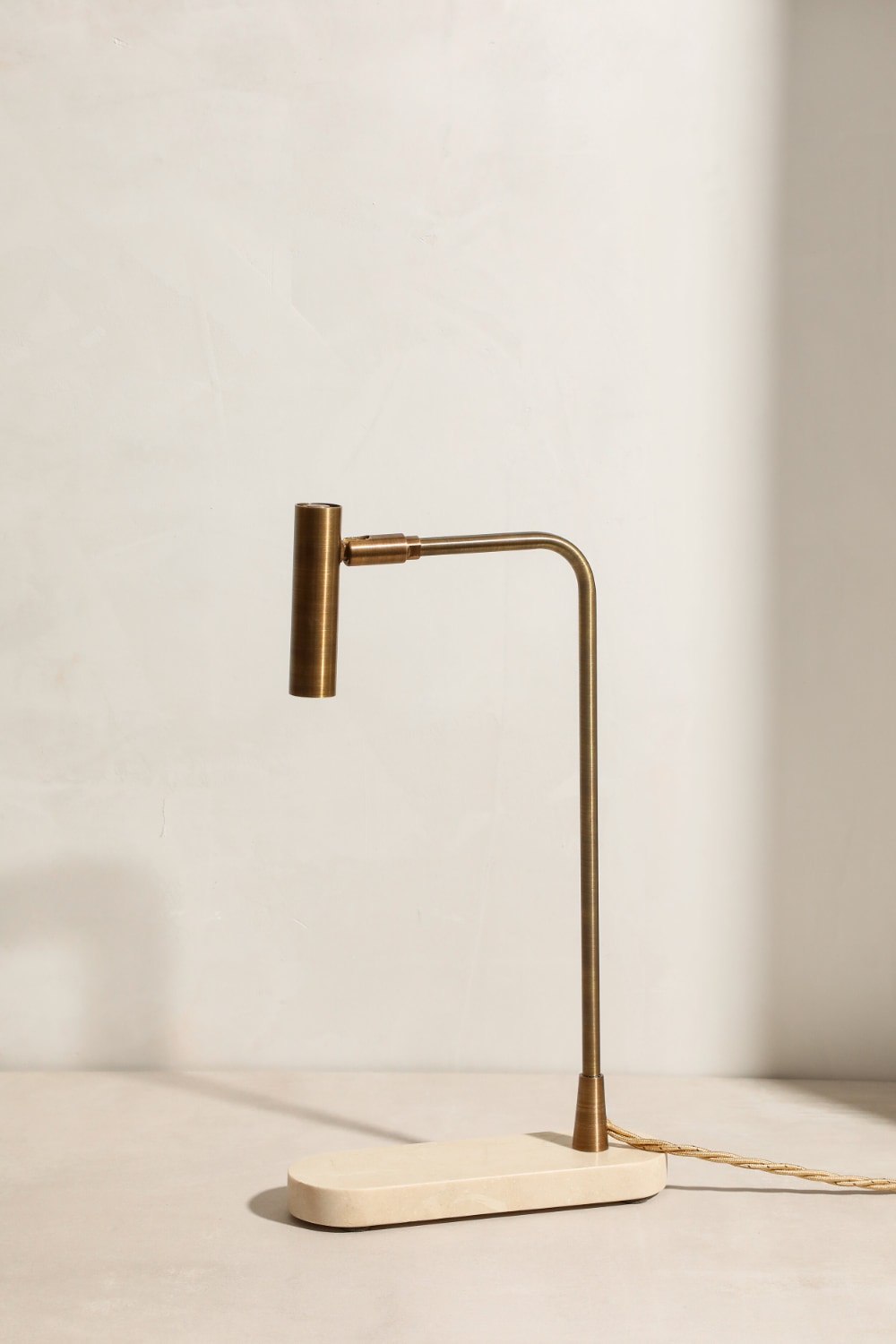 Настольная лампа Contain Book Table — это аксессуар, который станет частью вашего окружения на рабочем столе или прикроватной тумбе. Светильник имеет классический силуэт, а сочетание камня с естественным рисунком, уникальным для каждого изделия, и латуни придаёт объекту изящества. Диффузор можно поворачивать, чтобы добиться нужного направления света.