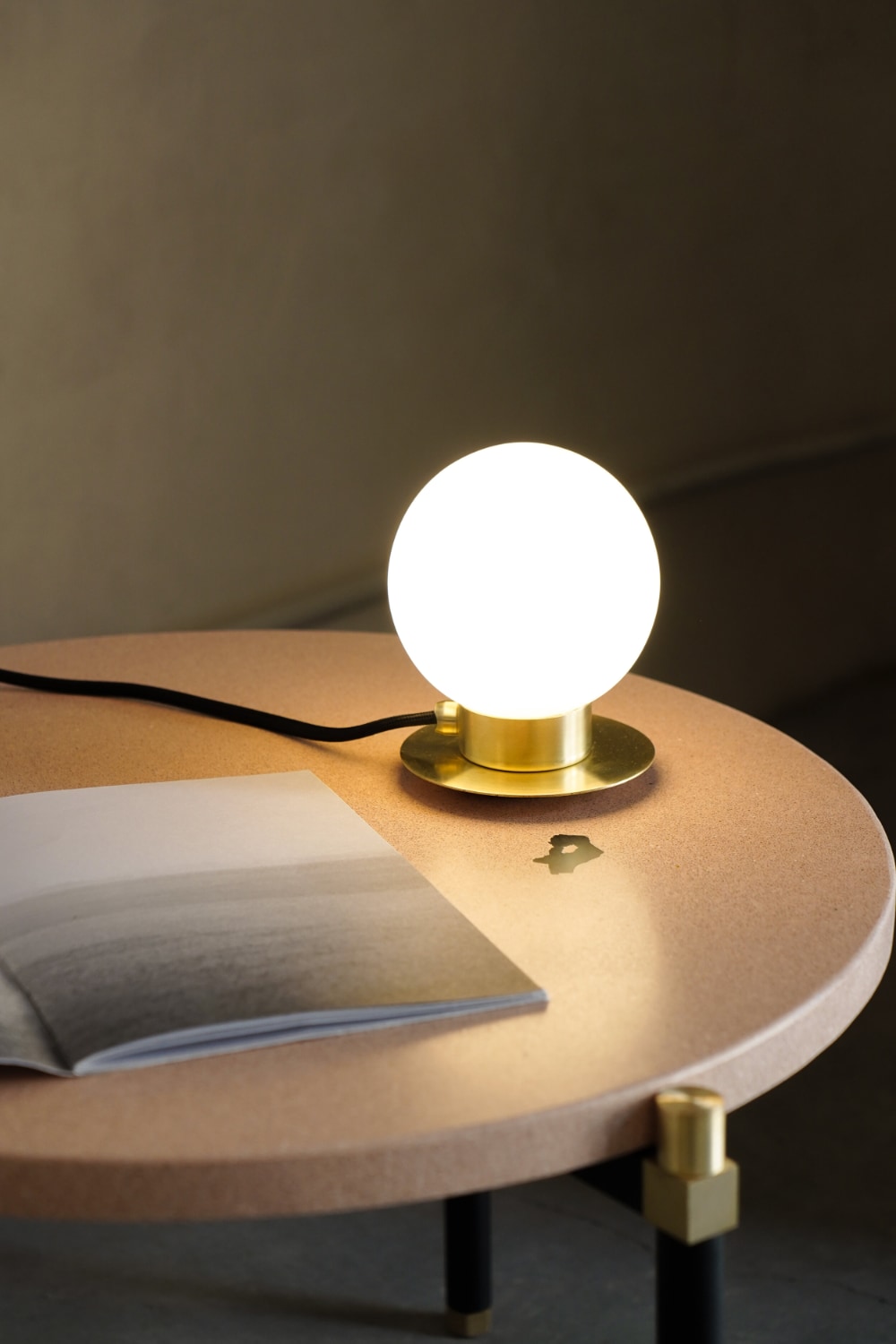 Настольная лампа Contain Disco Mini Table — минималистичный светильник, представляющий собой сферический диффузор на латунной подставке. Опаловое стекло мягко рассеивает свет по всему пространству, а просто силуэт не отвлекает от акцентных предметов интерьера.