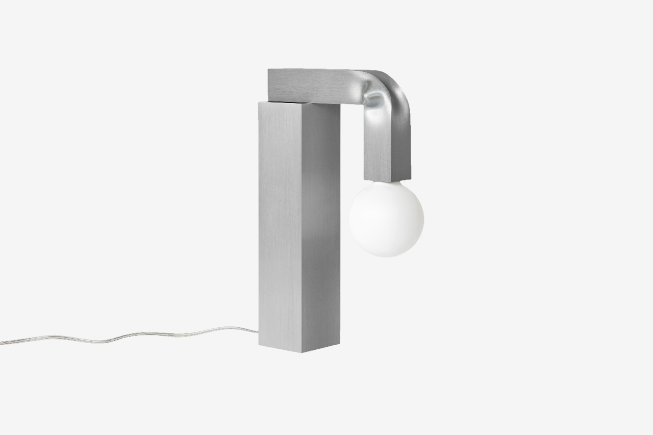Изгиб ножки настольной лампы Hem Knuckle придаёт дизайну грубую, но утончённую красоту. Свет приглушённо отражается от алюминиевой базы. Knuckle — это произведение, которое играет с нашим восприятием и чувством гармонии.