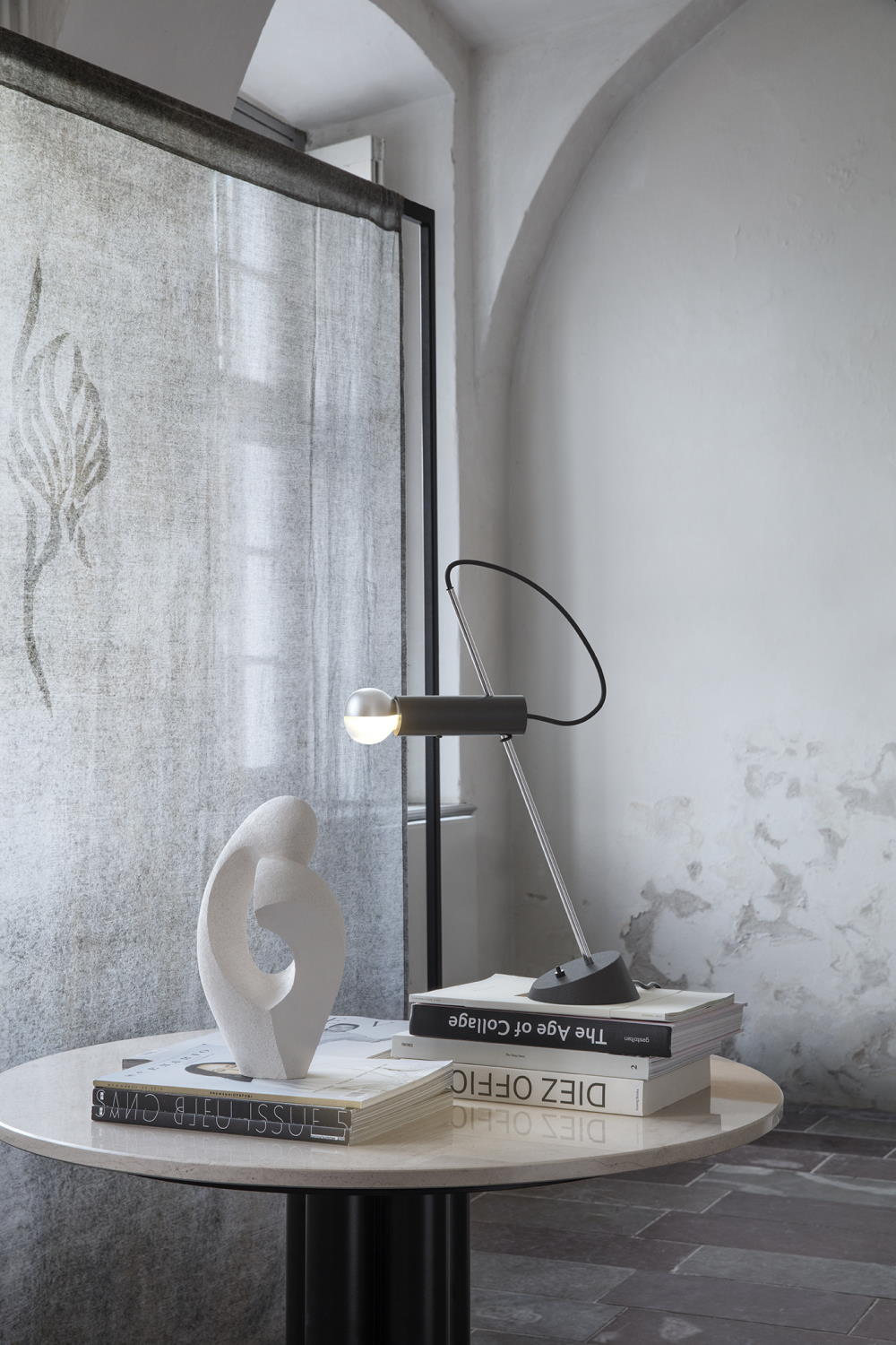 Лампа Model 566 разработанa в 1956. Светильник стоит неподвижно, а наклон вперёд создаёт ощущение динамики. Основание, которое в первых ревизиях делалось из чугуна, теперь изготовлено из сплава алюминия, магния и меди. Его особенность в экологичности и хорошей устойчивости к коррозии.
