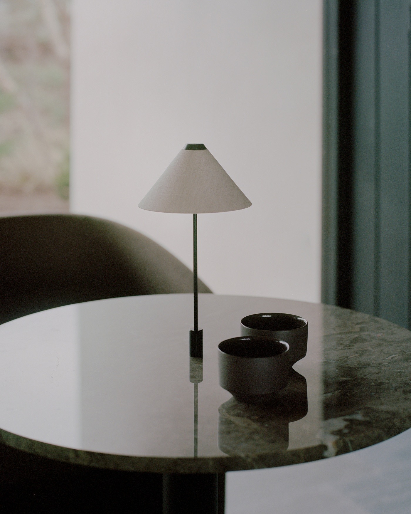 Настольная лампа New Works Brolly In-Table — новая версия портативной лампы Brolly Portable Table Lamp, разработанная специально для предприятий общественного питания. Наличие тонкого, почти невесомого основания, помогает органично расположить лампу на столике любого размера. Абажур строгой конической формы создаёт равномерный рассеянный свет, позволяя создать уютную атмосферу даже в оживлённом кафе.