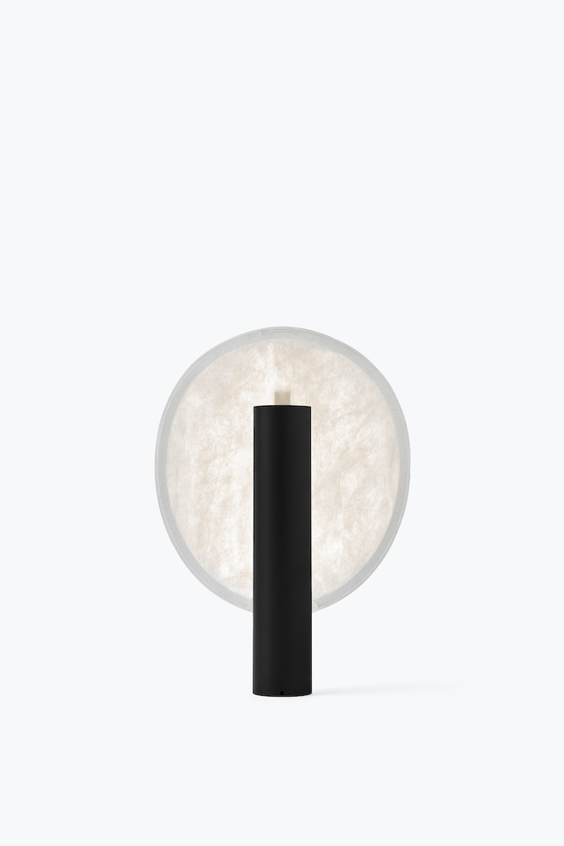 Настольная лампа New Works Tense Portable Table Lamp, расположенная почти в вертикальном положении, даёт широкие возможности насладиться красивой текстурой абажура и мягким рассеиванием света. Лампа работает на батарейках, так что его можно легко перемещать, а цветовую температуру и яркость можно отрегулировать в соответствии с желаемой атмосферой.