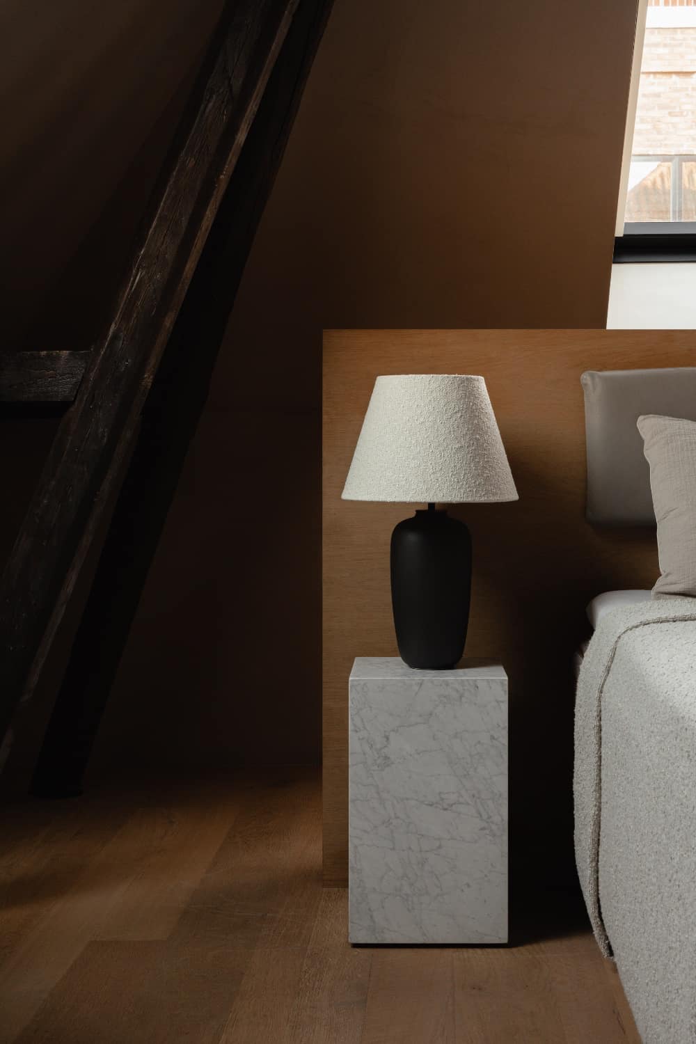 Настольная лампа Menu Torso Table Lamp, 57, Limited — это ограниченное издание культового светильника от дизайнера Krøyer-Sætter-Lassen. От классической лампы оно отличается абажуром, выполненным в коллаборации с текстильным домом из Милана Dedar. Итальянская ткань контрастирует с простой формой основания, выводя ваш интерьер на новый уровень изящества.