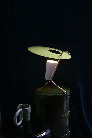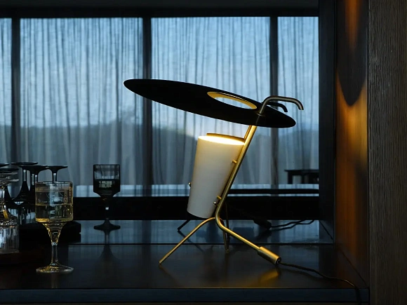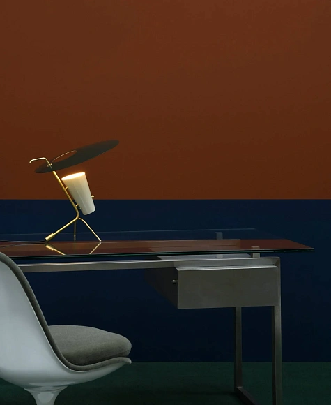 Настольная лампа G24 с интригующими линиями разработана Pierre Guariche в 1953. Элегантная, изящная и скульптурная, она идеально освещает рабочий стол, консоль или прикроватную тумбочку.