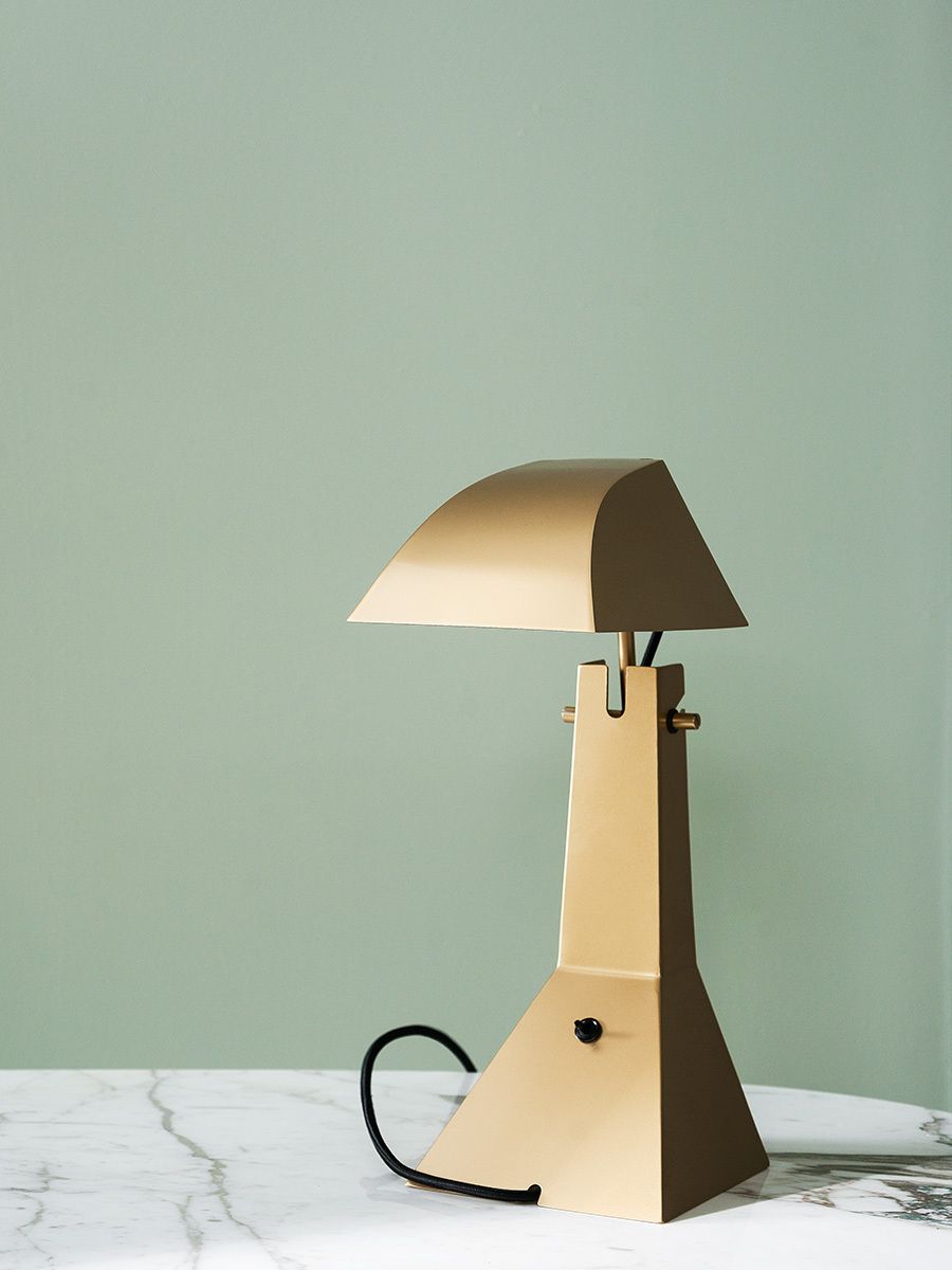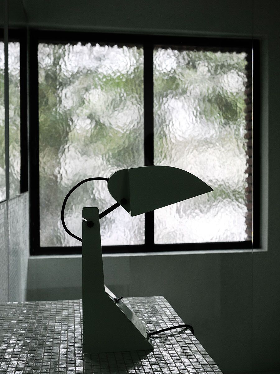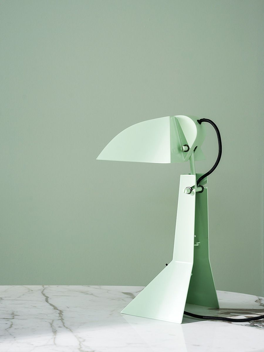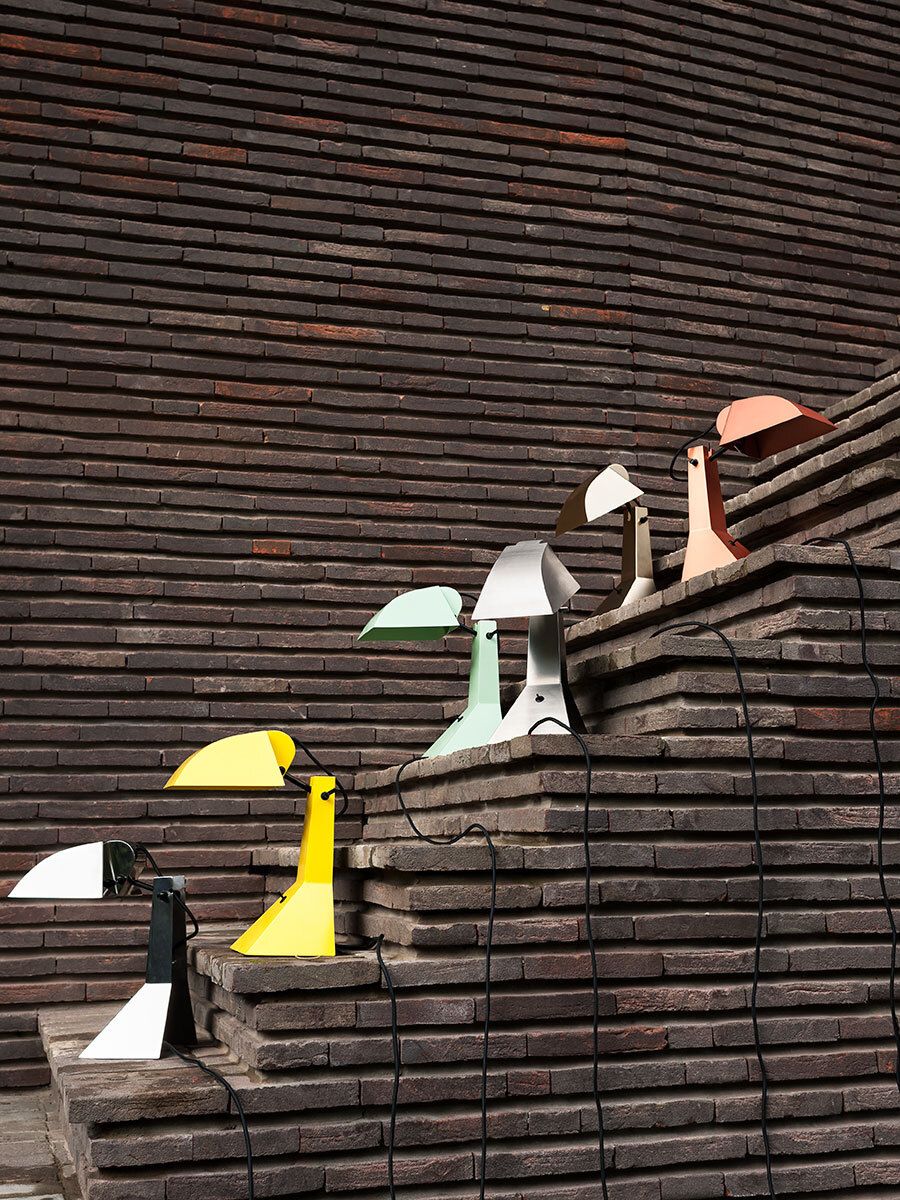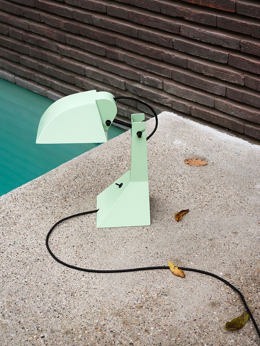 Настольная лампа Tacchini E63 от Umberto Riva — переиздание исторической модели. Массивная стойка соединяет основание с широким козырьком. Углы плафона и основания четко очерчены. Лампа создает направленный поток света.