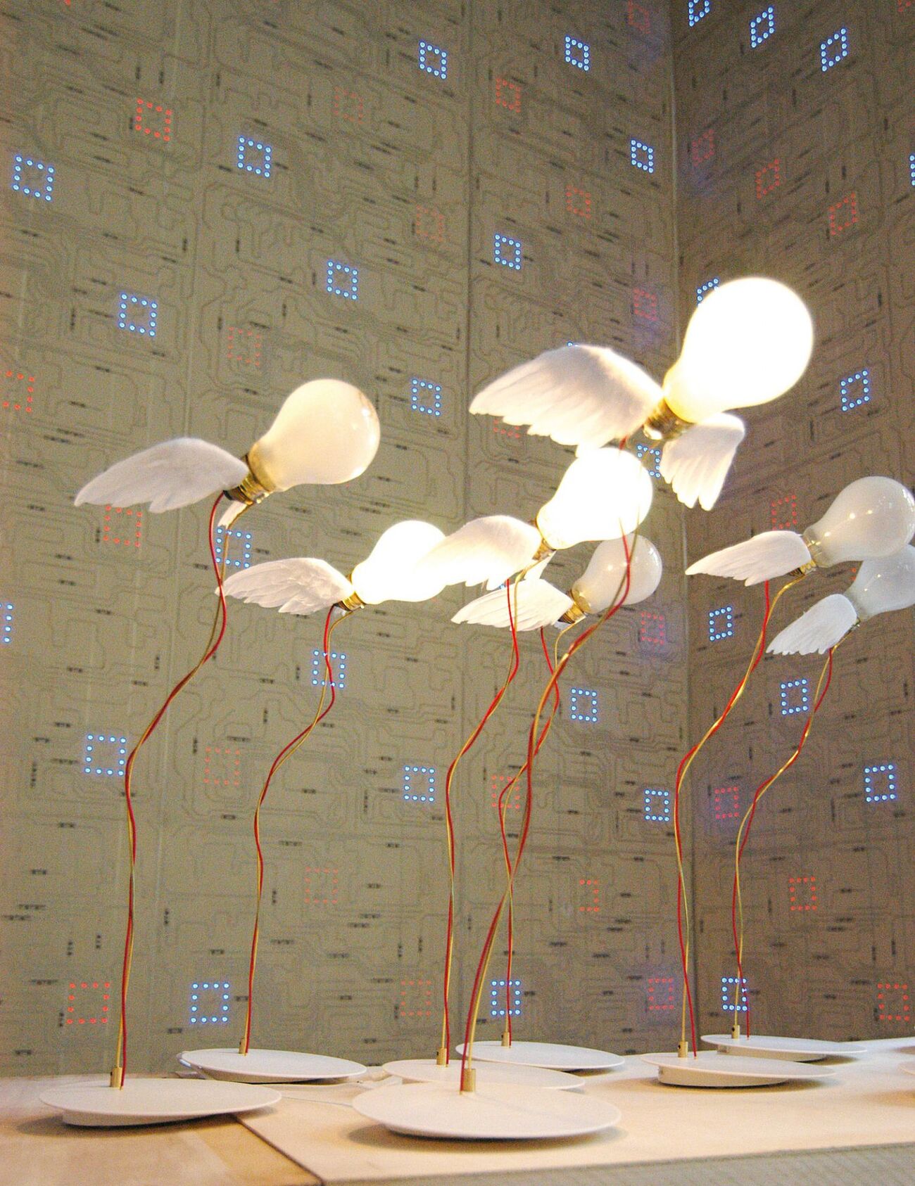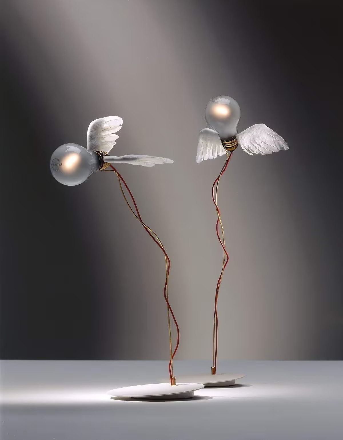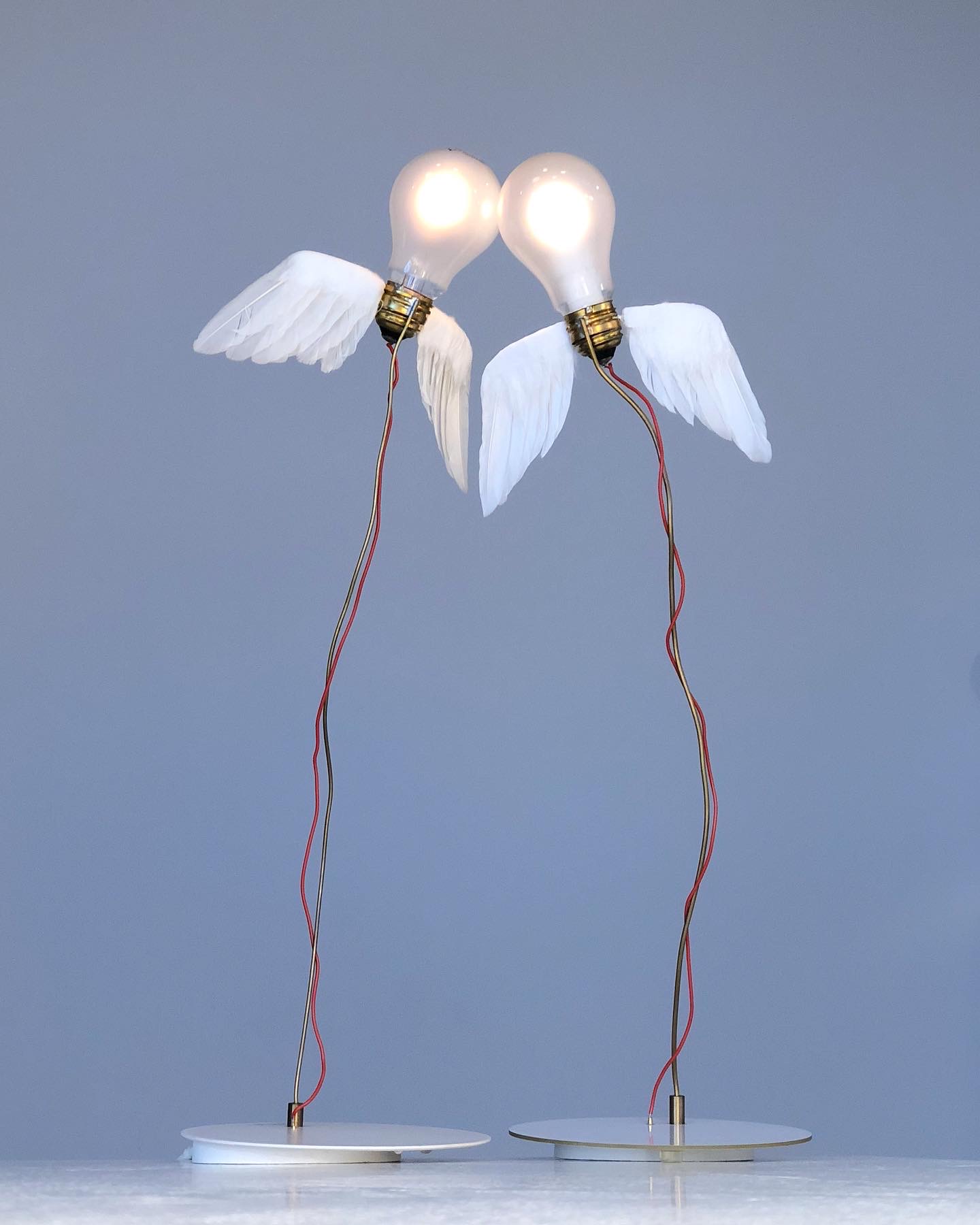 Настольный светильник Ingo Maurer Lucellino Table — это сочетание мастерства и технических инноваций. Простая конструкция Lucellino Table состоит из будто парящих в воздухе реалистичных крыльев и гибкого металлического стержня. Разместив лампу в спальной или гостиной зоне, можно легко создать по-настоящему волшебную атмосферу.