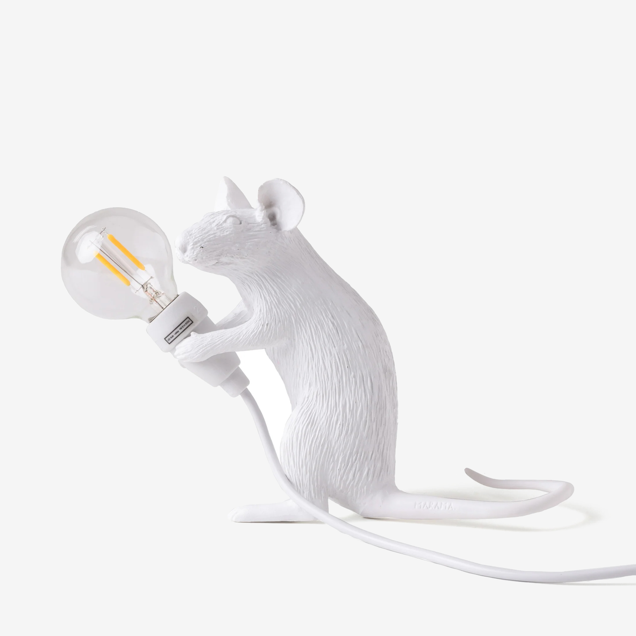Настольный светильник Seletti Mouse Lamp Mac понравится и детям, и взрослым. Дизайнер дополнил модель минималистичной лампочкой, чтобы сконцентрировать основное внимание на выполненной с особым мастерством фигуре мышки. Забавный светильник прекрасно подойдёт для создания непринуждённой атмосферы.