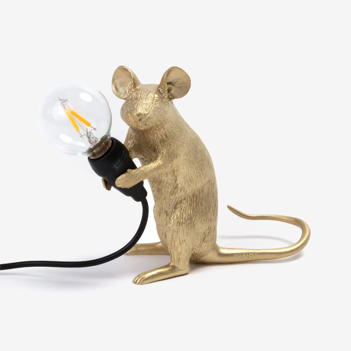 Настольный светильник Seletti Mouse Lamp Mac Gold понравится и детям, и взрослым. Дизайнер дополнил модель минималистичной лампочкой, чтобы сконцентрировать основное внимание на выполненной с особым мастерством фигуре мышки. Забавный светильник прекрасно подойдёт для создания непринуждённой атмосферы.