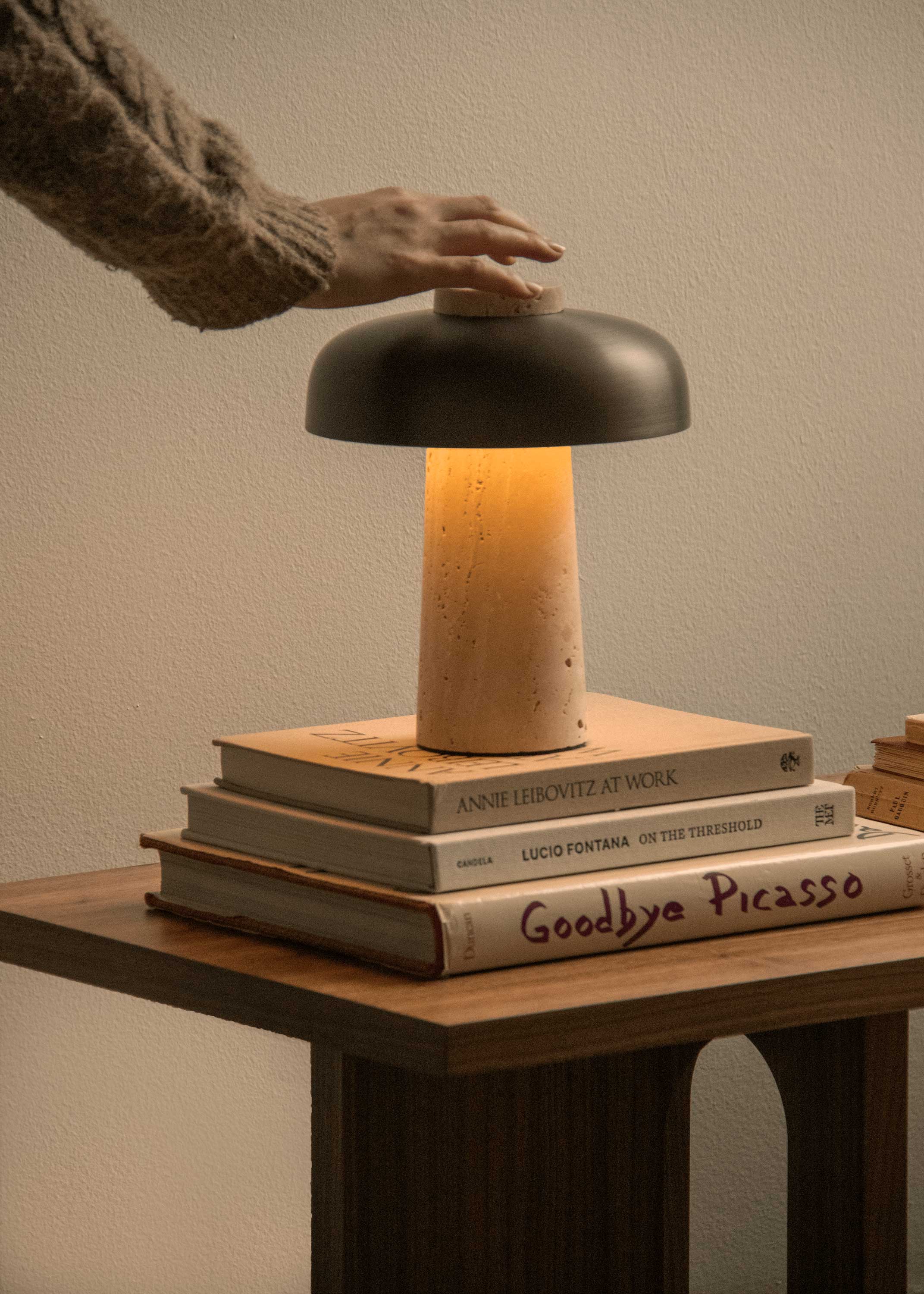 Portable Reverse Table Lamp от Audo Copenhagen — переносная версия культового светильника, сочетающая в себе природную текстуру и утончённый дизайн. Опаловый рассеиватель создаёт мягкий, равномерный свет, а встроенный диммер с тремя уровнями яркости позволяет адаптировать освещение под любое настроение. Степень защиты IP44 делает лампу подходящей для использования в ванных комнатах и на открытом воздухе.