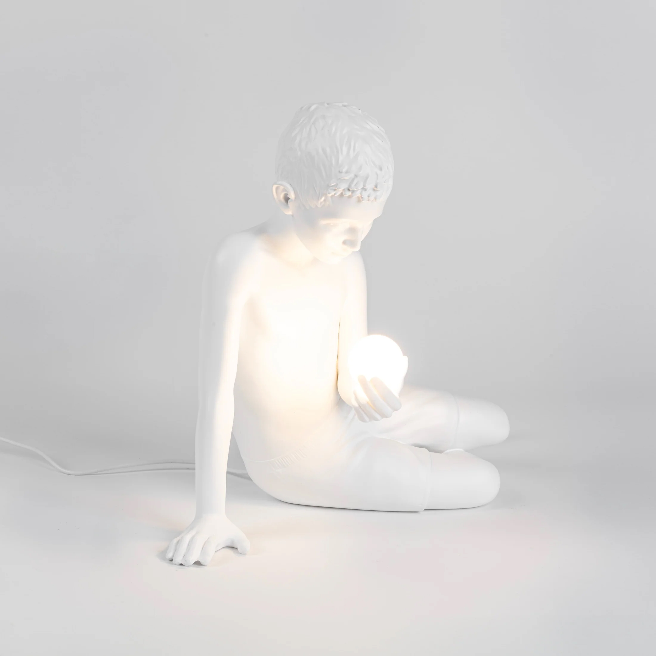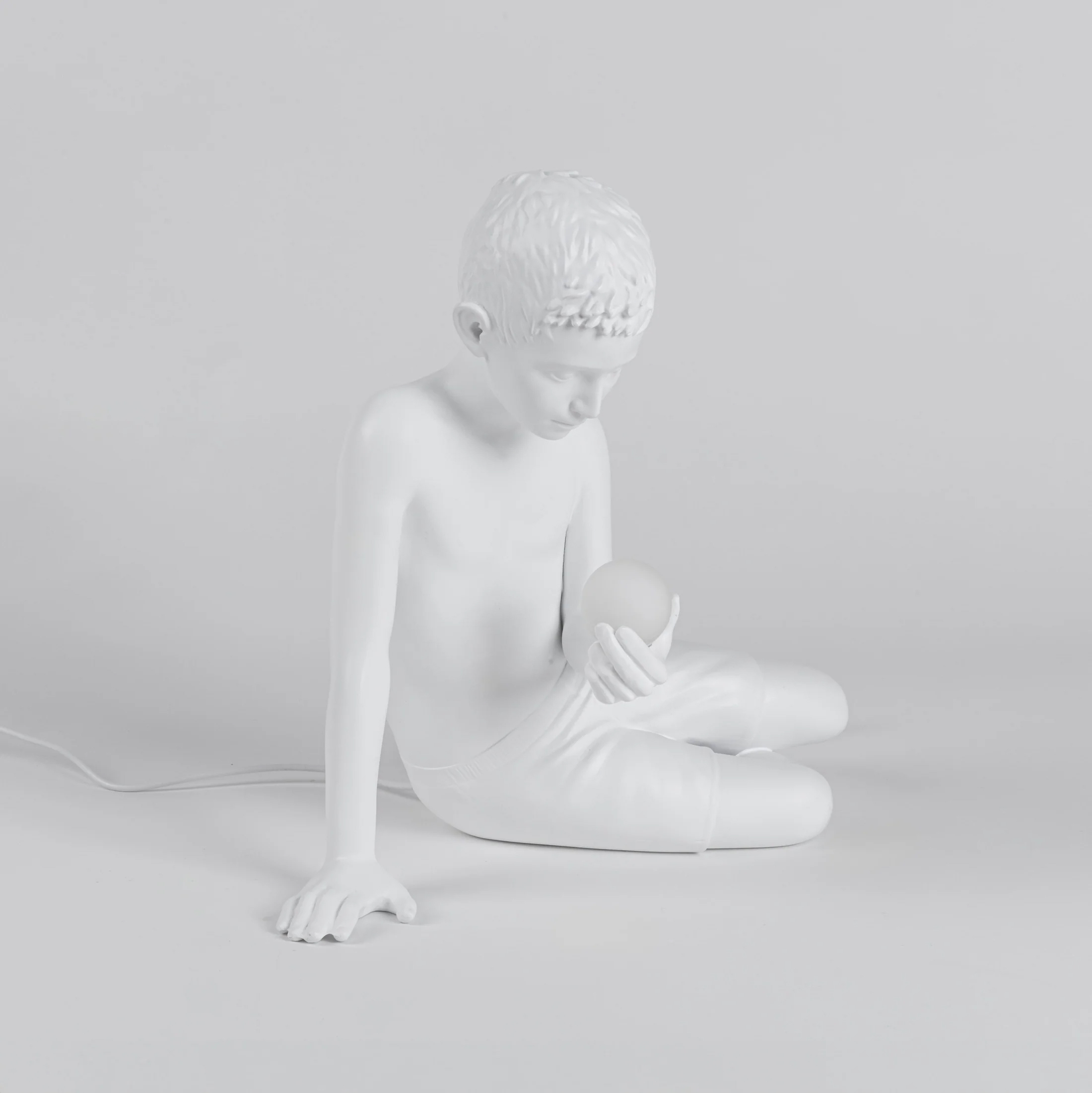 Светильник Seletti Inner Glow S Boy — созданная Marcantonio аллегория невинности и чистоты. Этот диммируемый светильник из смолы запечатлел момент глубокой меланхоличной задумчивости. Маленький мальчик, лежащий в безмятежной позе, созерцает сферу, символизирующую его внутренний свет. Inner Glow S Boy — это успокаивающая скульптура, привносящая в пространство тепло и уют.