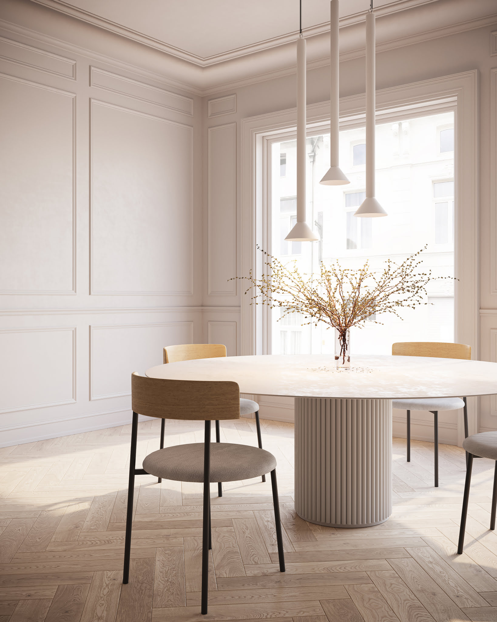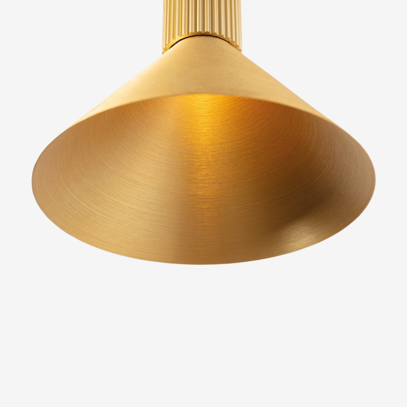 Подвесной светильник Modular Lightning Instruments Extruded имеет чёткий графичный силуэт. Рельефная поверхность модели выступает в виде декоративного элемента, придавая светильнику уникальный характер. Благодаря абажуру в виде конуса лампа создаёт направленный световой поток, с помощью которого можно акцентировать внимание на определённой части пространства.
