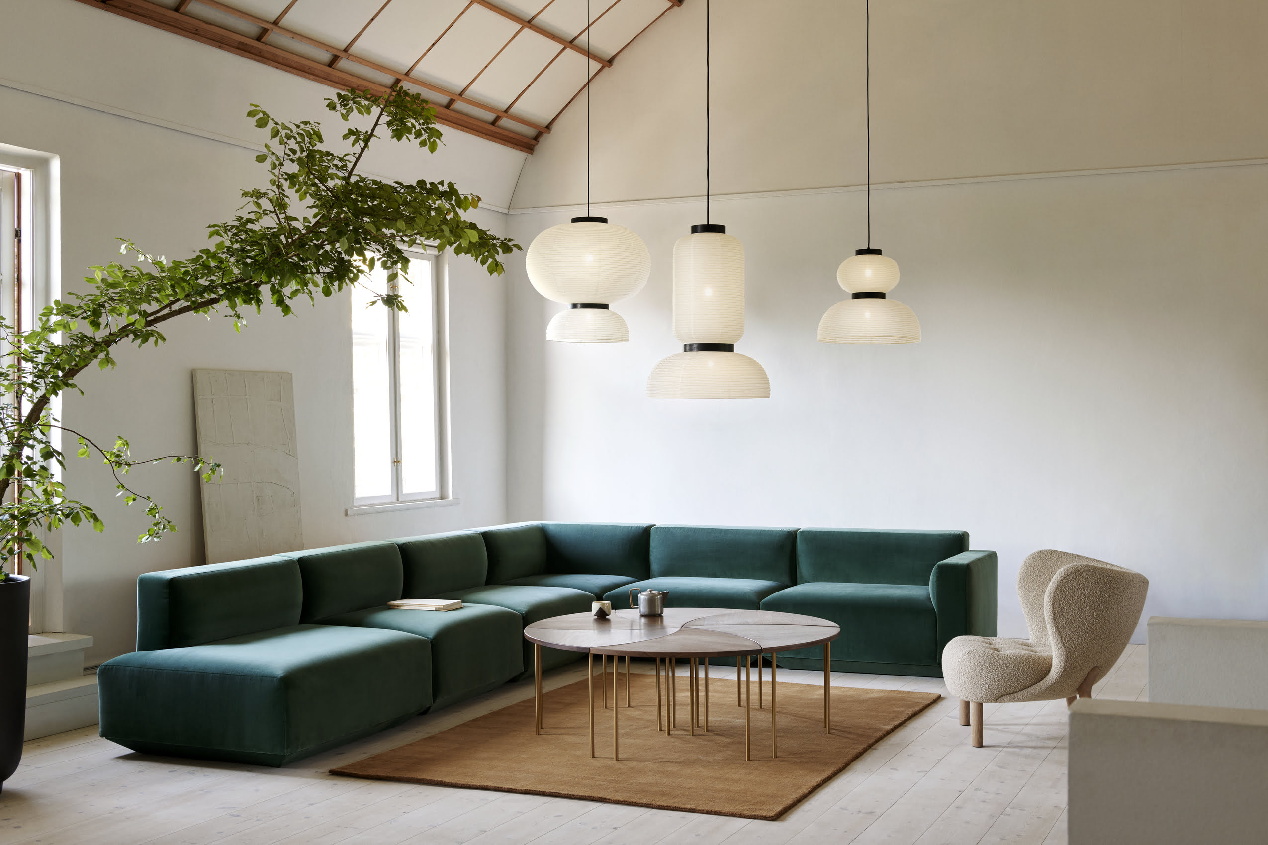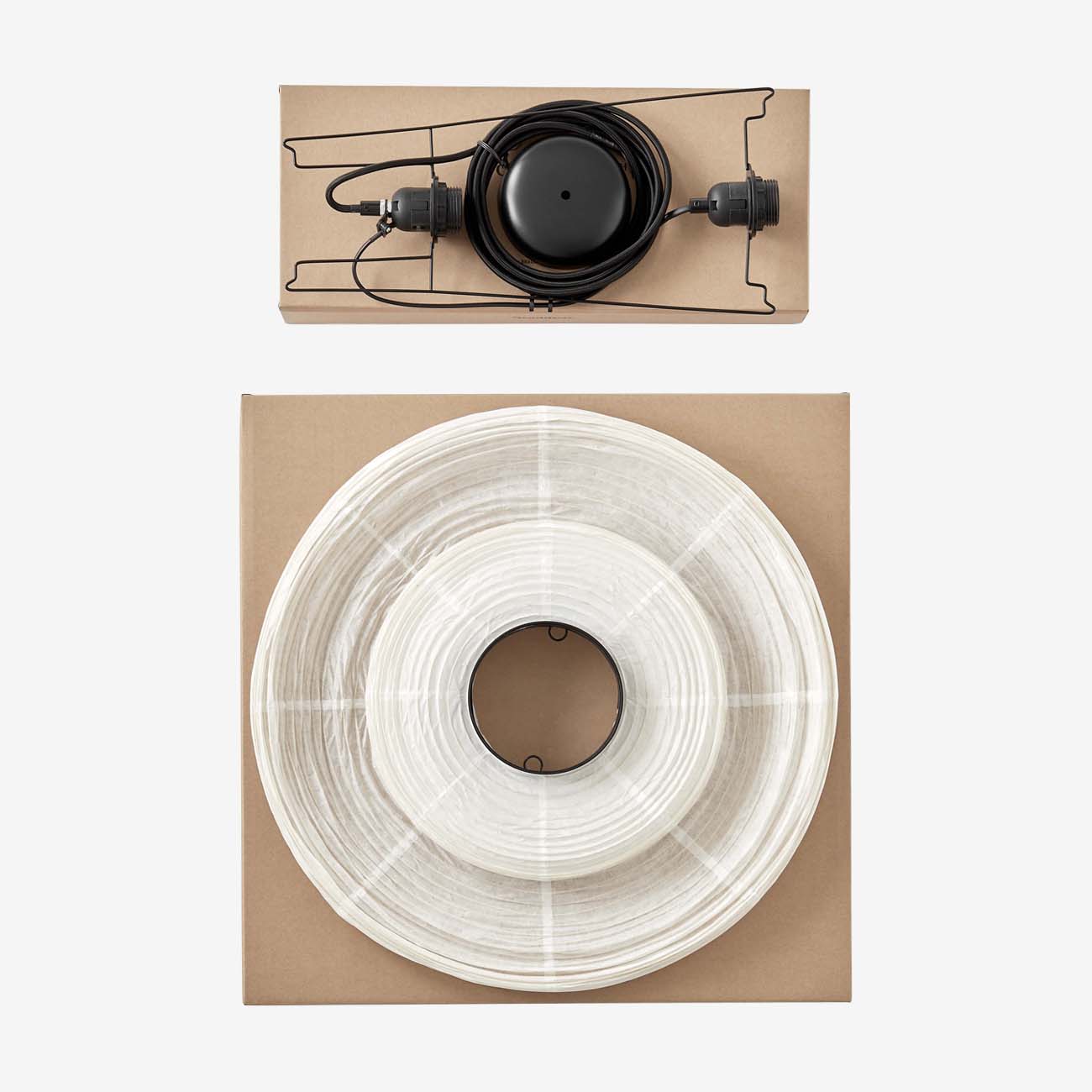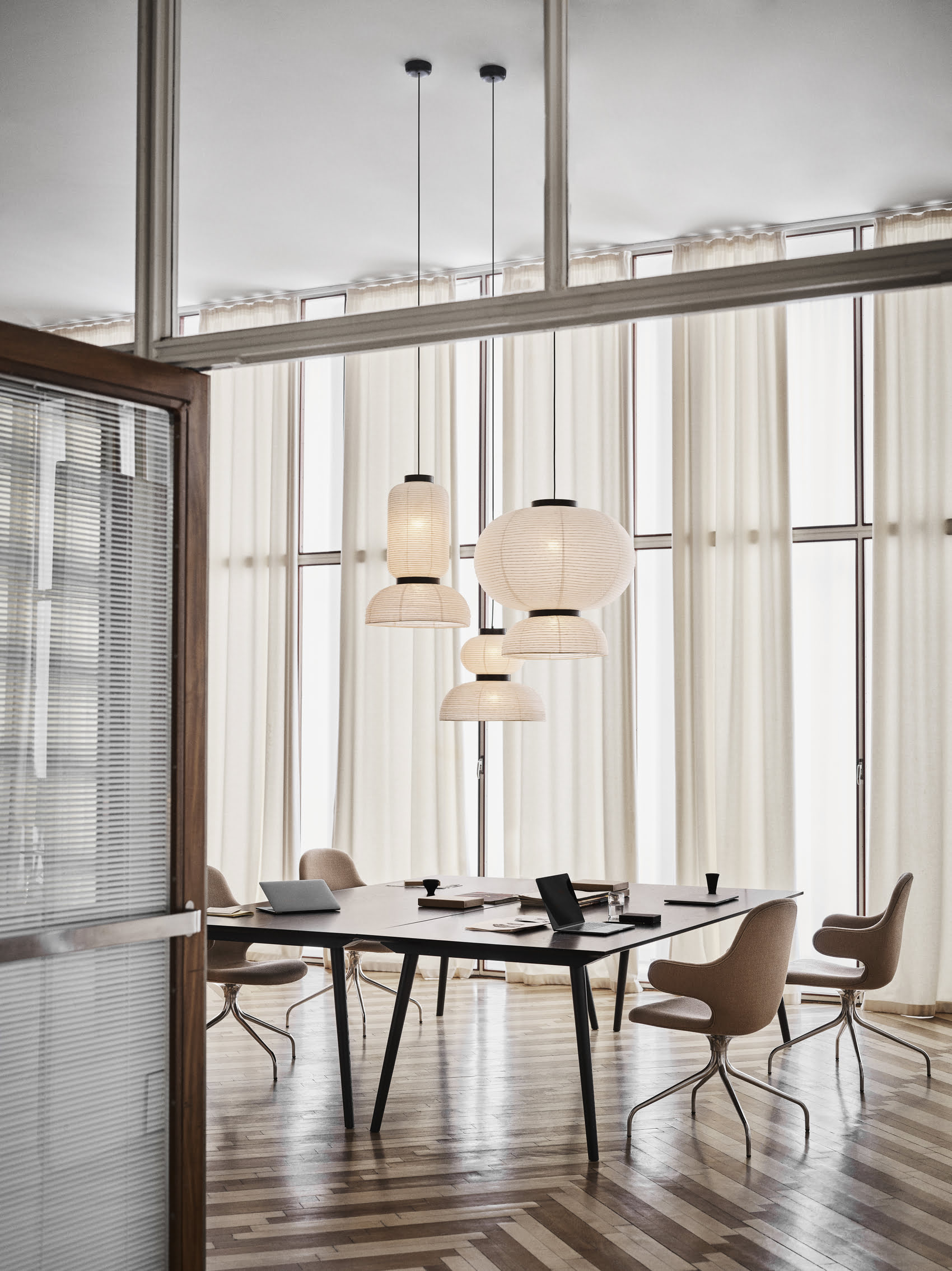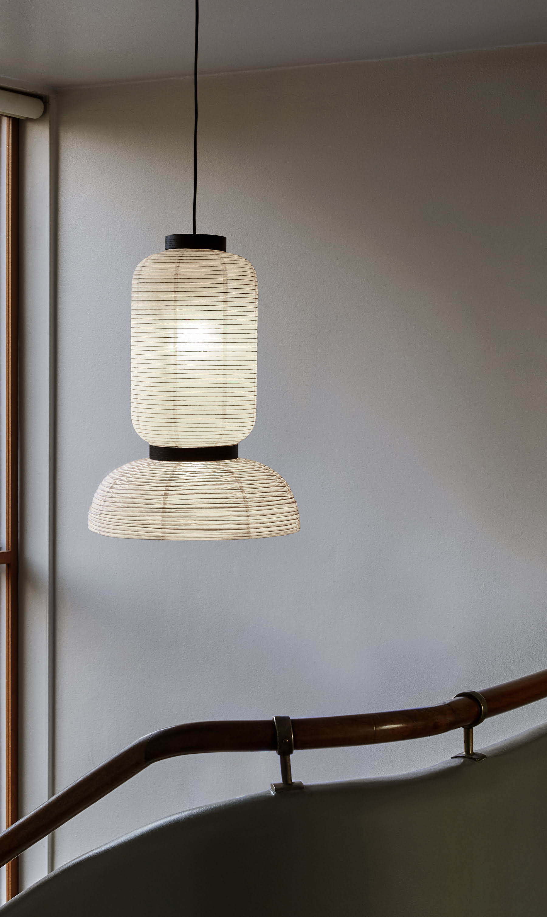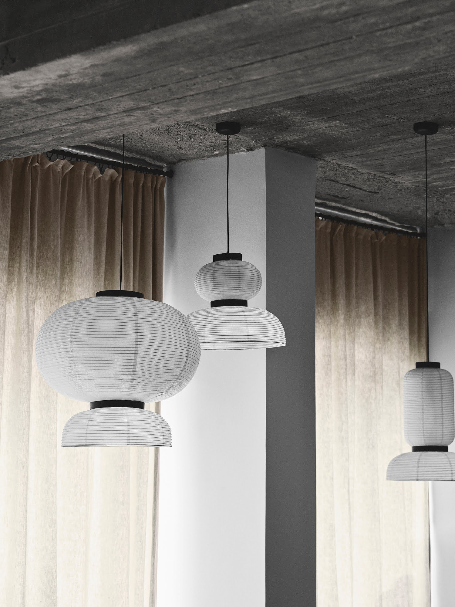 В подвесном светильнике And Tradition Formakami Pendant JH3 встречаются восточный и западный колорит. Изделие выполнено из рисовой бумаги, характерной для традиционных азиатских фонариков. Белый светильник дополнен небольшими декоративными деталями контрастного чёрного оттенка.