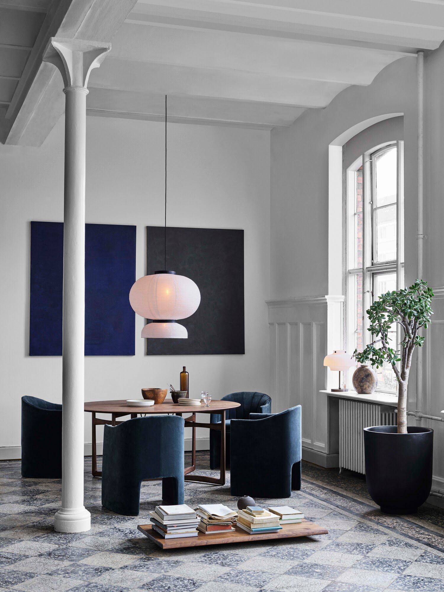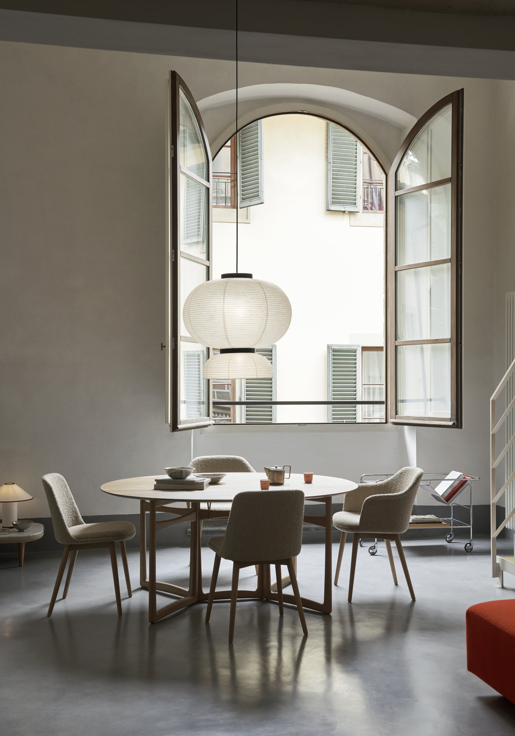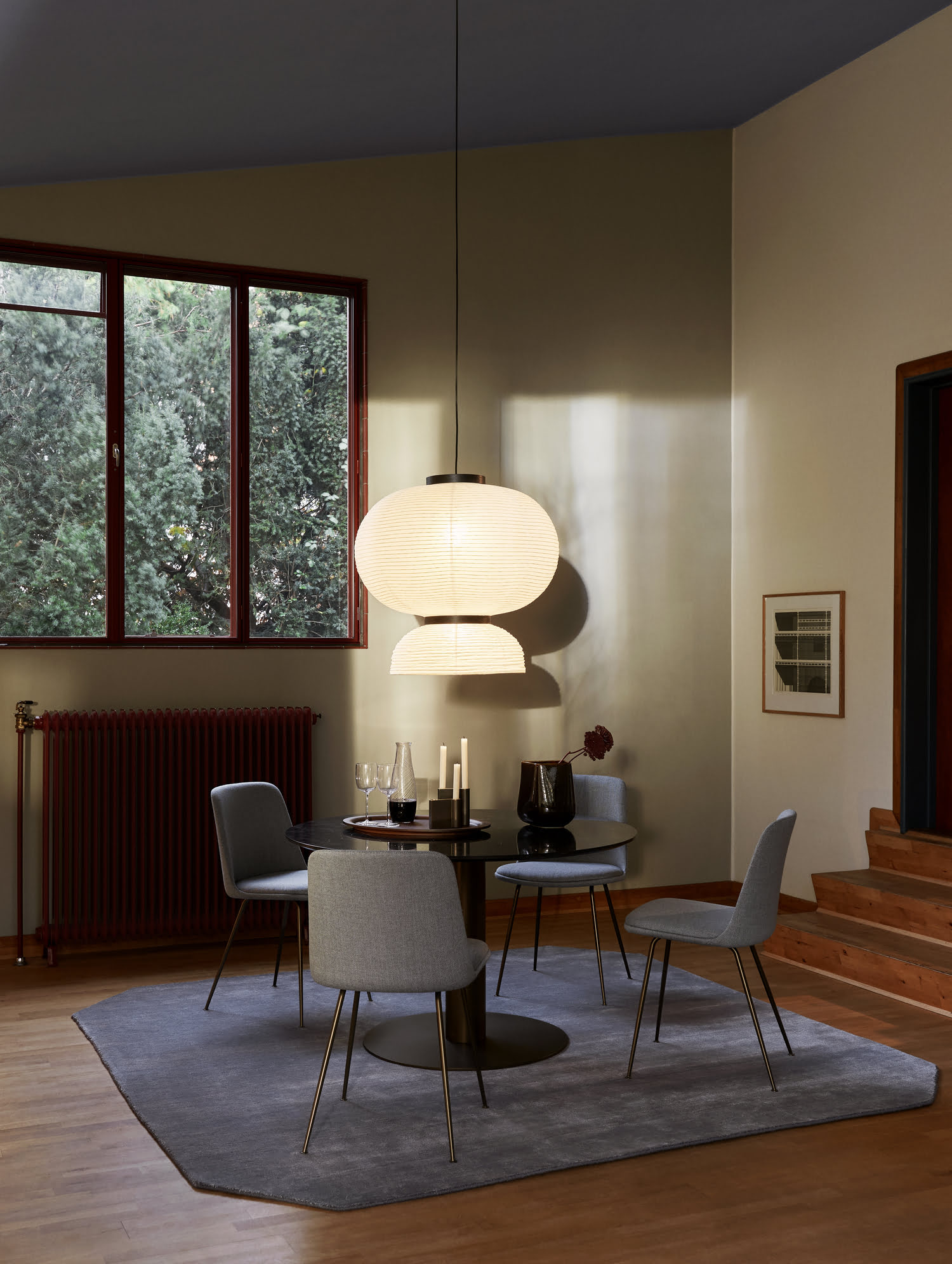 Подвесной светильник And Tradition Formakami Pendant JH5 — современная интерпретация традиционной японской лампы в виде фонаря. Модель гармонично сочетает в себе контрастные по фактуре и цветовой гамме материалы: рисовую бумагу и морёный дуб. Необычная форма светильника способна сделать его акцентной деталью интерьера.
