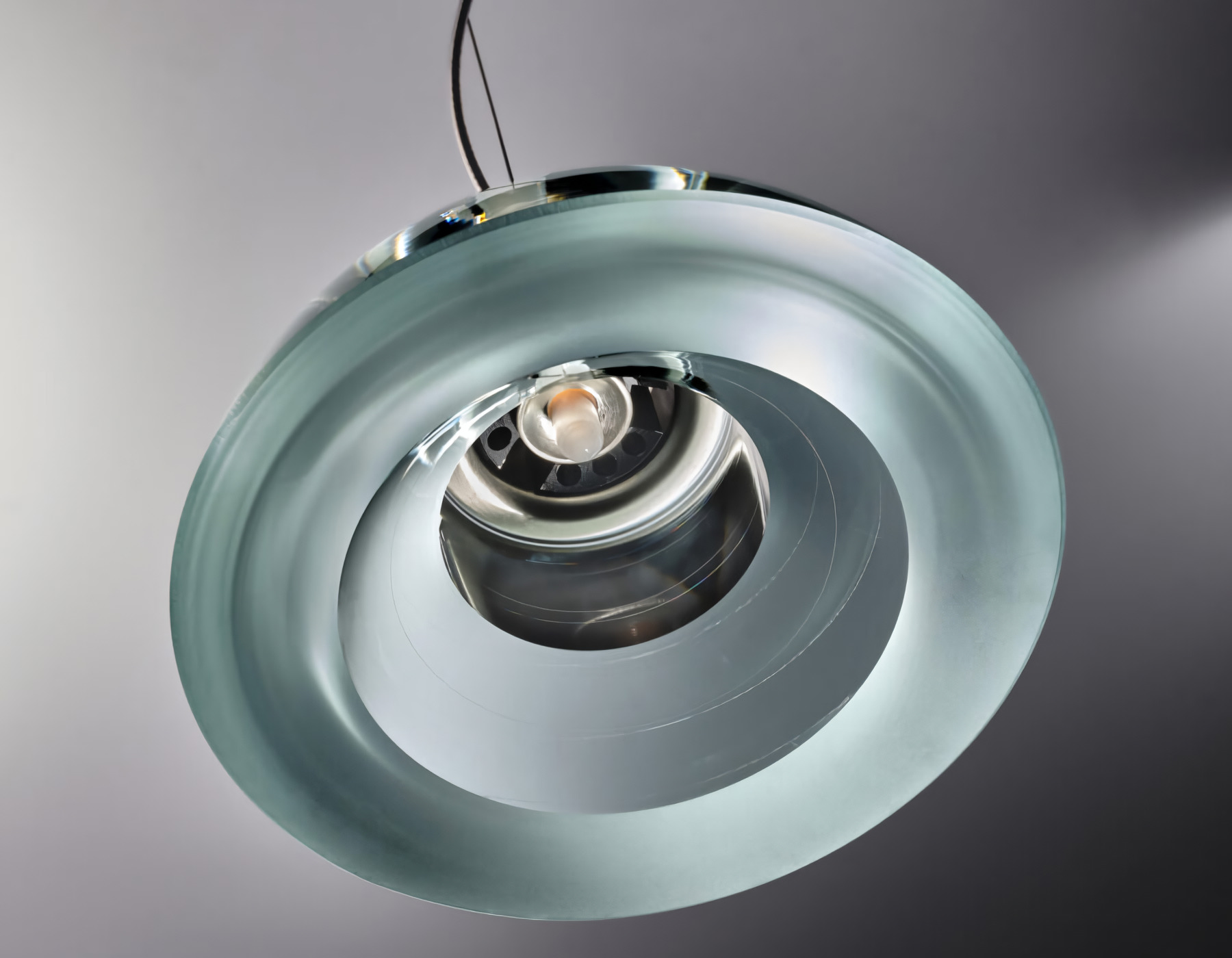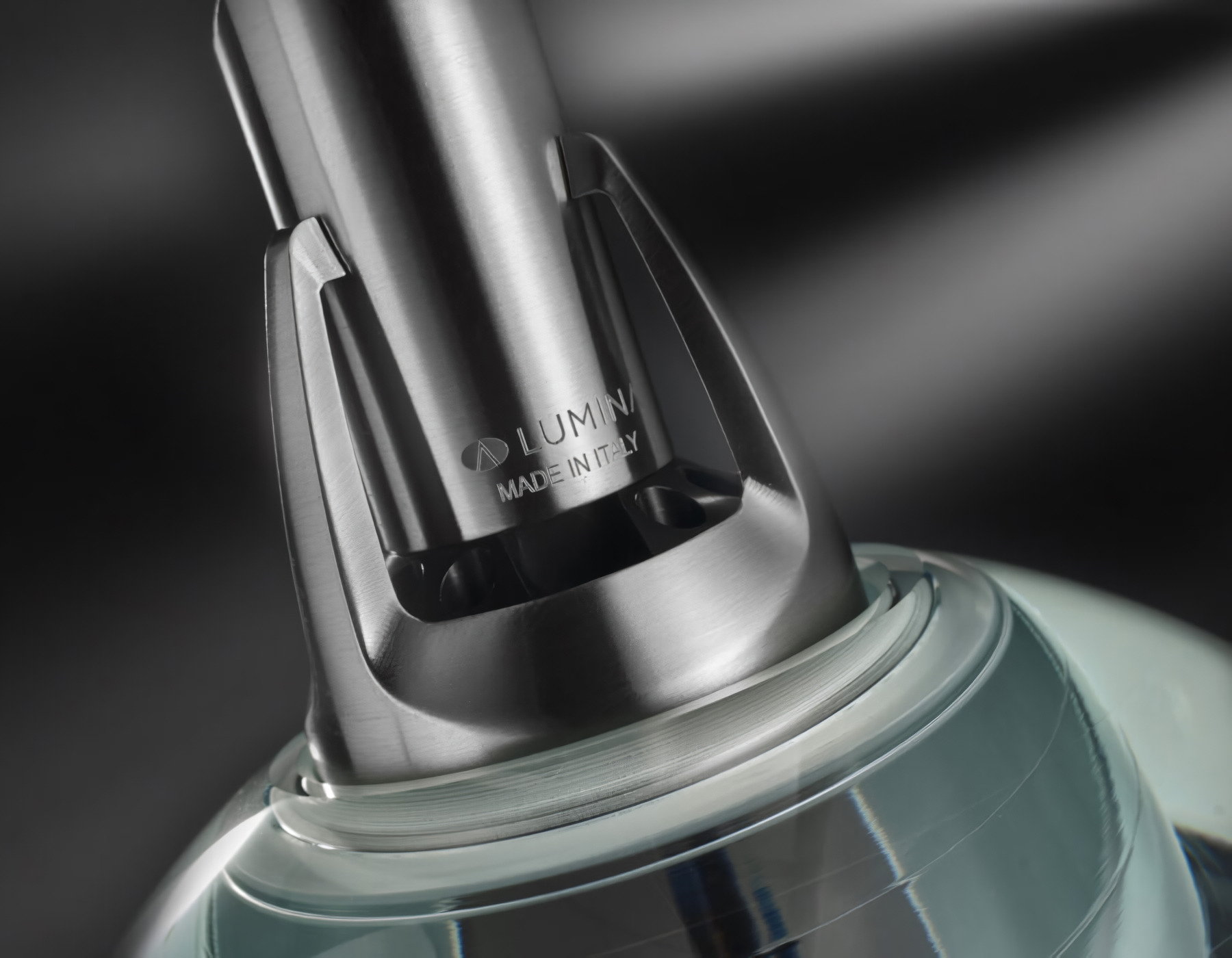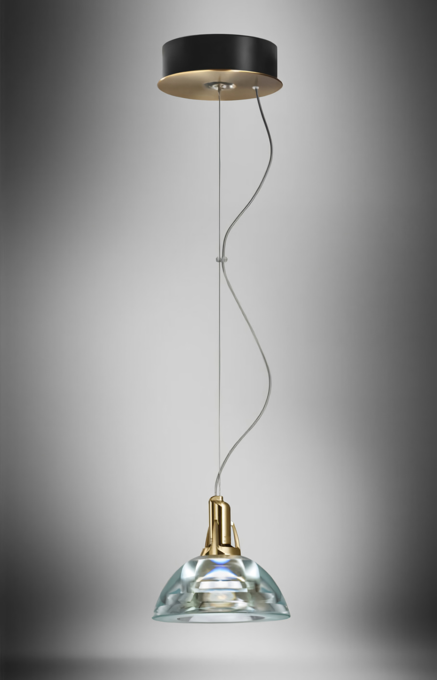 Подвесной светильник Lumina Galileo имеет сложный в исполнении, не имеющий аналогов рассеиватель из стекла. Идеально гладкая поверхность плафона становится такой после многих часов фрезерования и шлифования. Светильник дополнен декоративным металлическим элементом золотого либо серебряного оттенка.