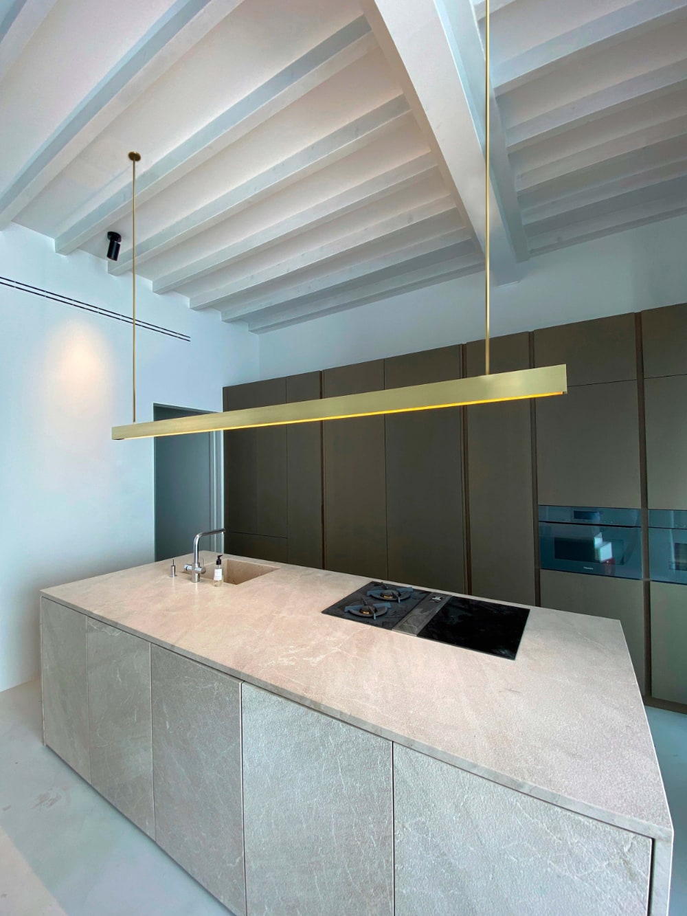 Подвесной светильник Contain H Pendant Lamp — это объект, дизайн которого выполнен архитектурной студией OHLAB. Подвес оснащён массивным латунным каркасом, внутри которого располагается встроенная LED-лента мощностью 40 Вт на метр.