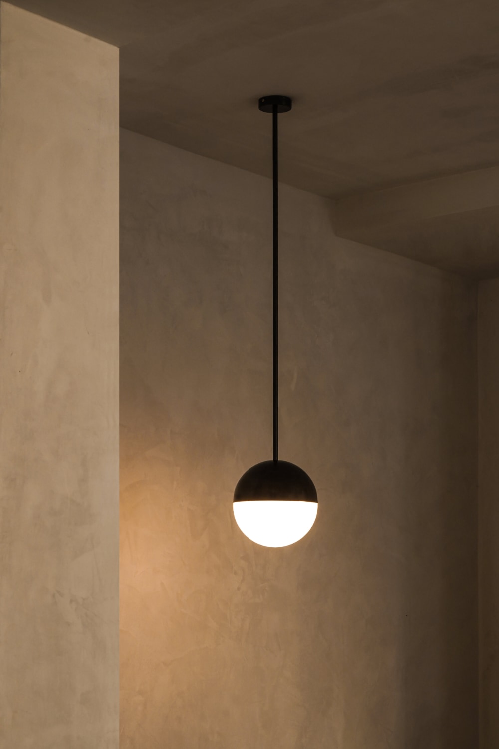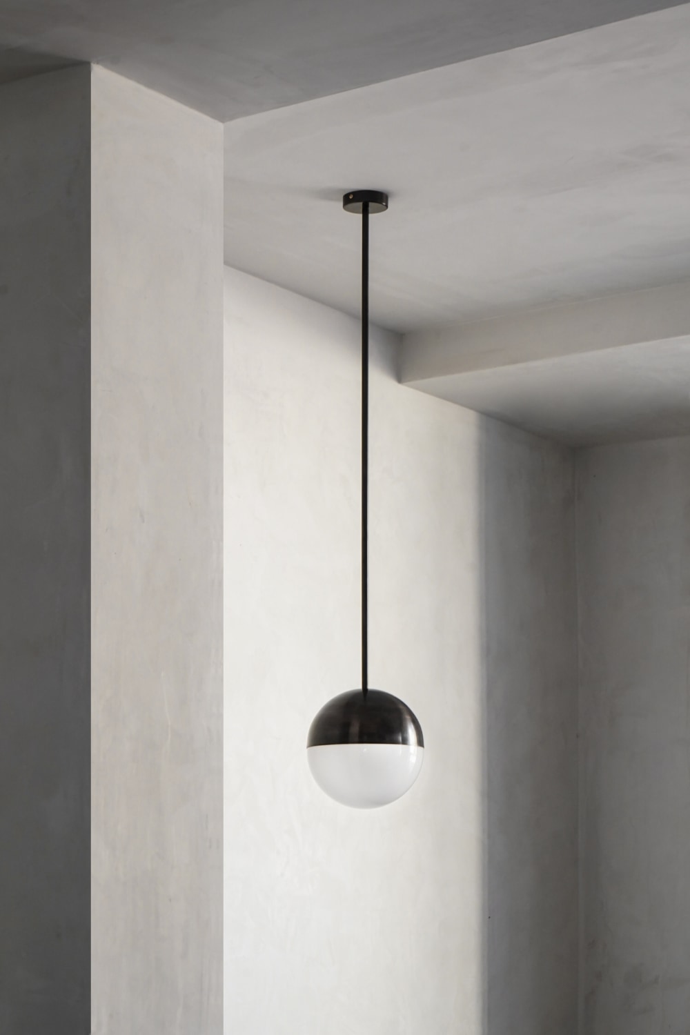 Подвесной светильник Contain Half & Half — предмет интерьера, обладающий простым, но в то же время изящным дизайном. Верхняя половина диффузора закрыта металлической полусферой, что выделяет объект на фоне прочих подвесов.