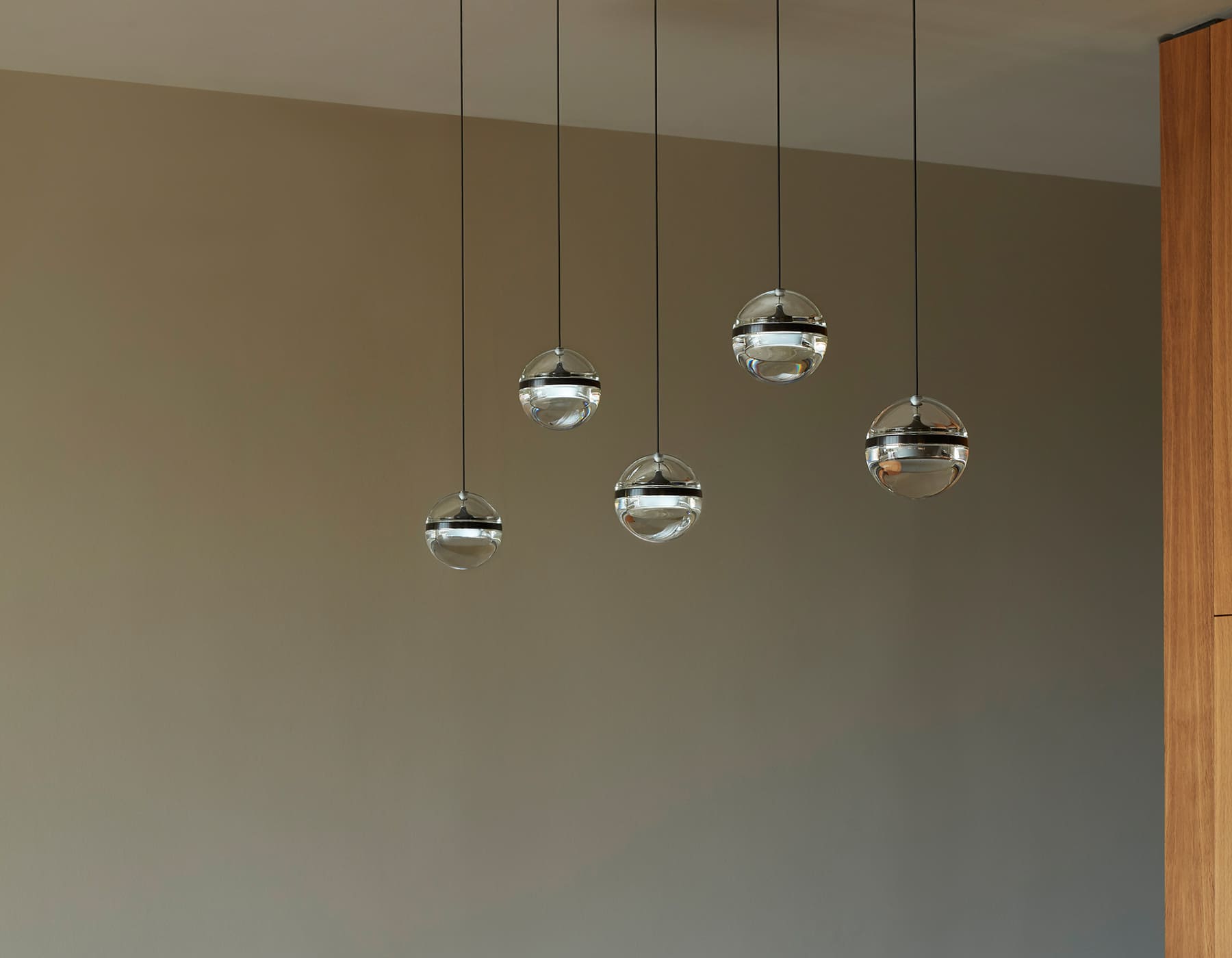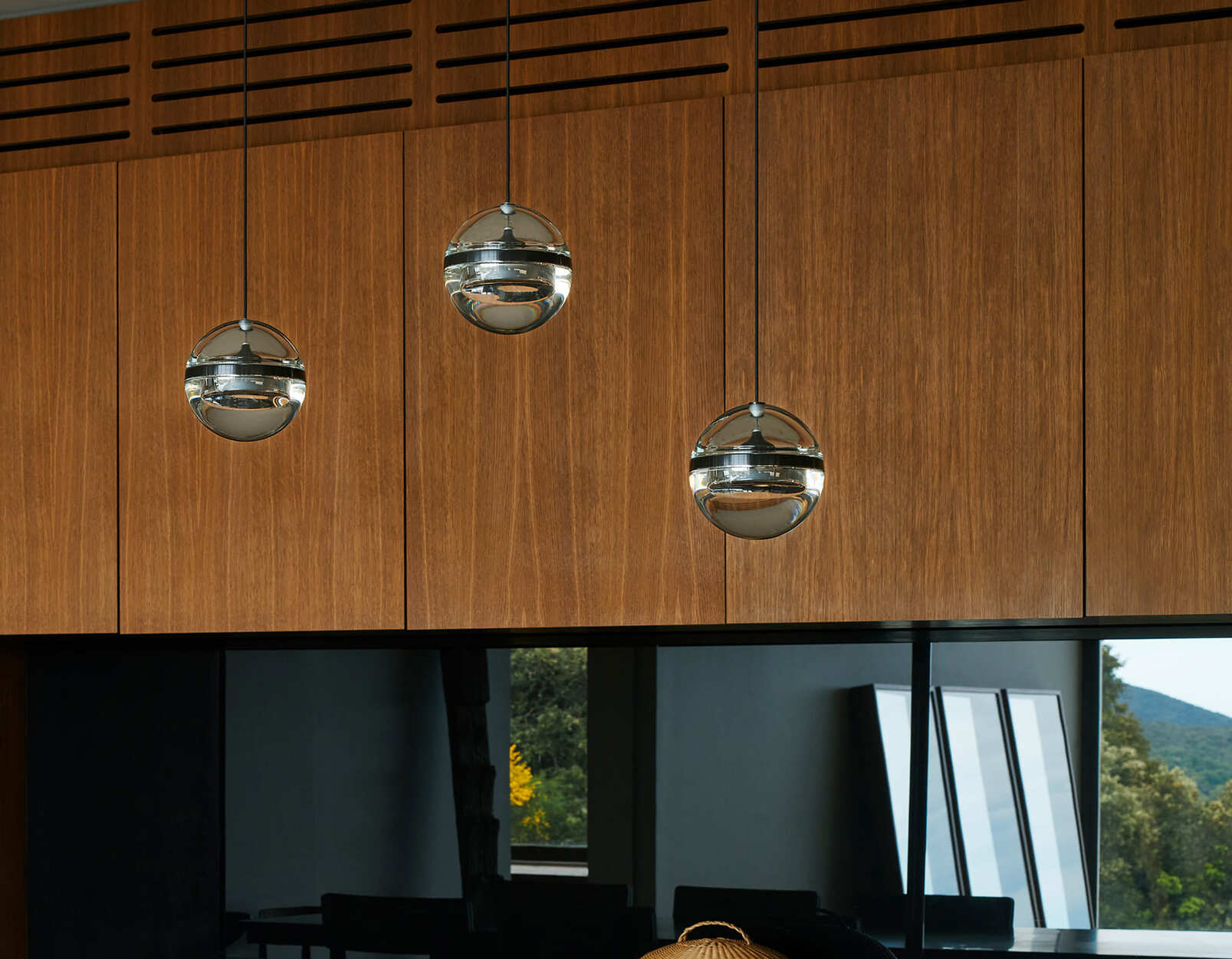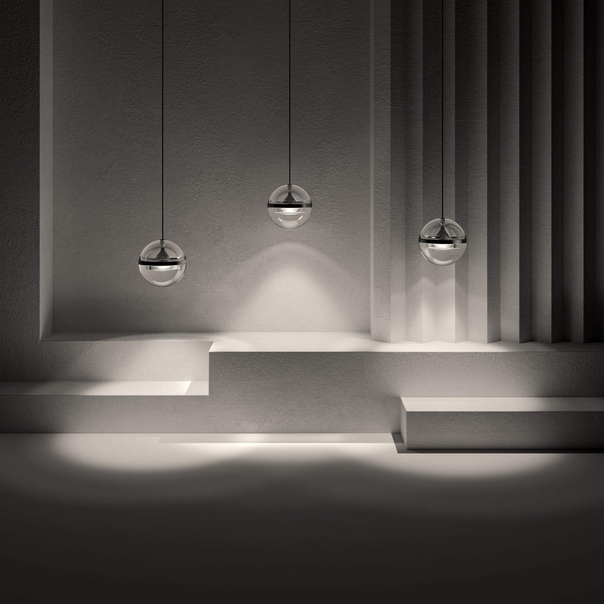 Подвесной светильник Lumina Limbus представляет собой соединение формы и функциональности. В нём причудливо сочетаются такие разные материалы, как стекло и металл. Нижняя полусфера защищает источник света, устраняя блики, а верхняя часть ограждает лампу от внешних факторов, например, пыли.