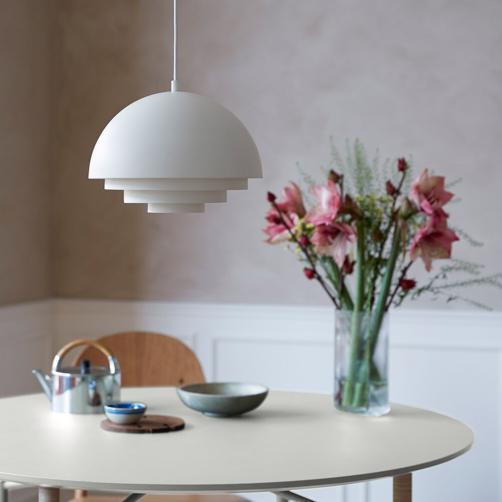 Подвесной светильник Warm Nordic Milieu Colour Mini — это элегантная лампа с органичным дизайном. Красивый кулон Milieu Mini Color легко парит в комнате, как небесное тело. Его многослойная полусферическая форма создаёт световой эффект без бликов. Оригинальный дизайн был вдохновлён страстью создателя светильника Jo Hammerborg к полётам и прыжкам с парашютом.