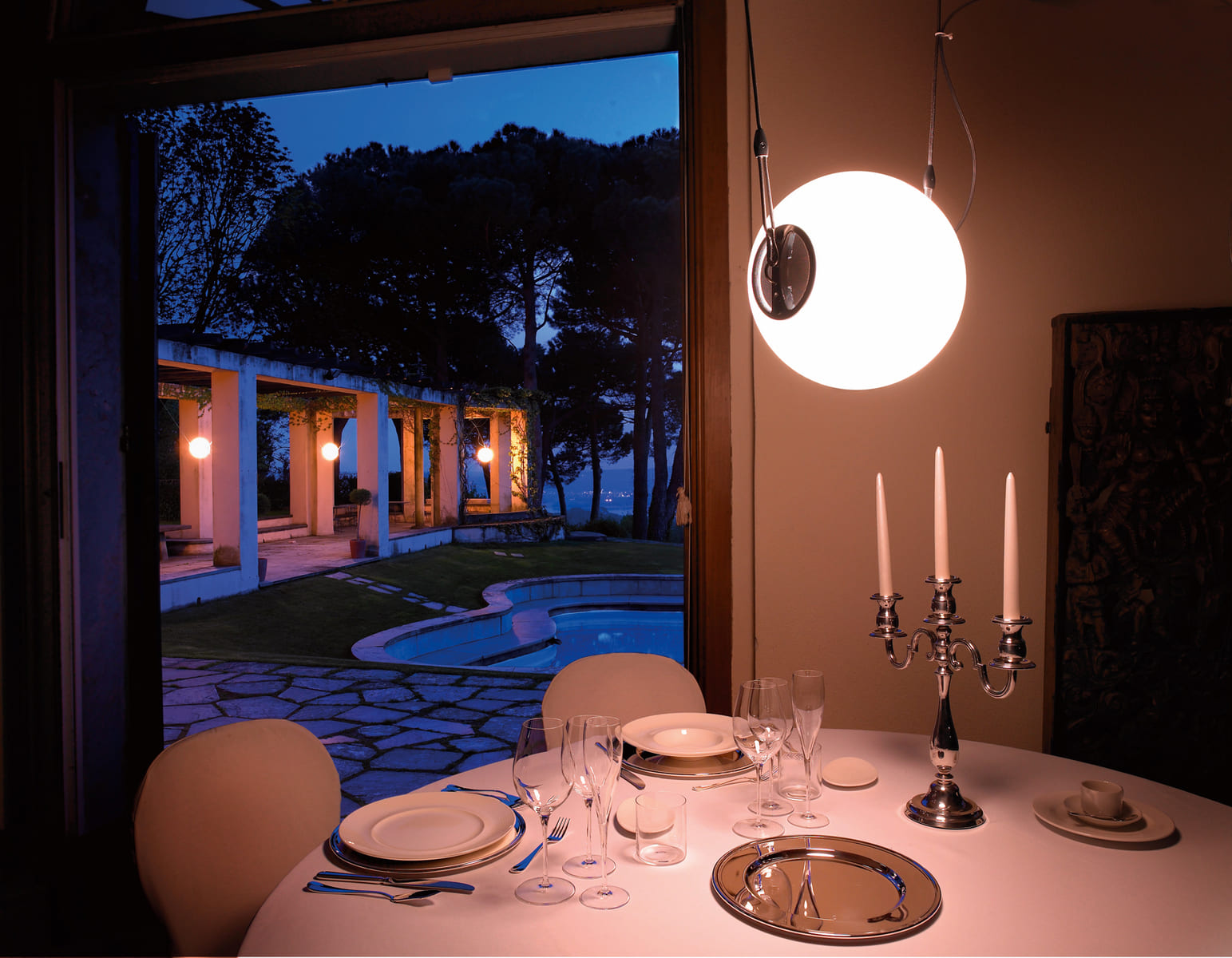 Polished Aluminium - White Blown Glass