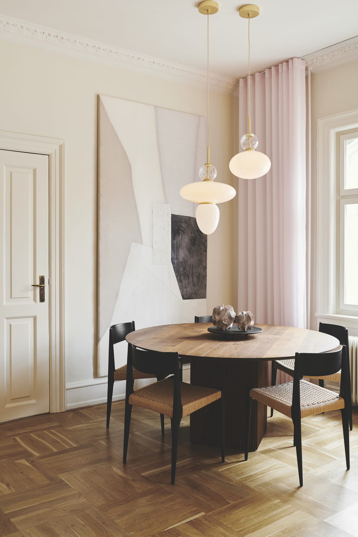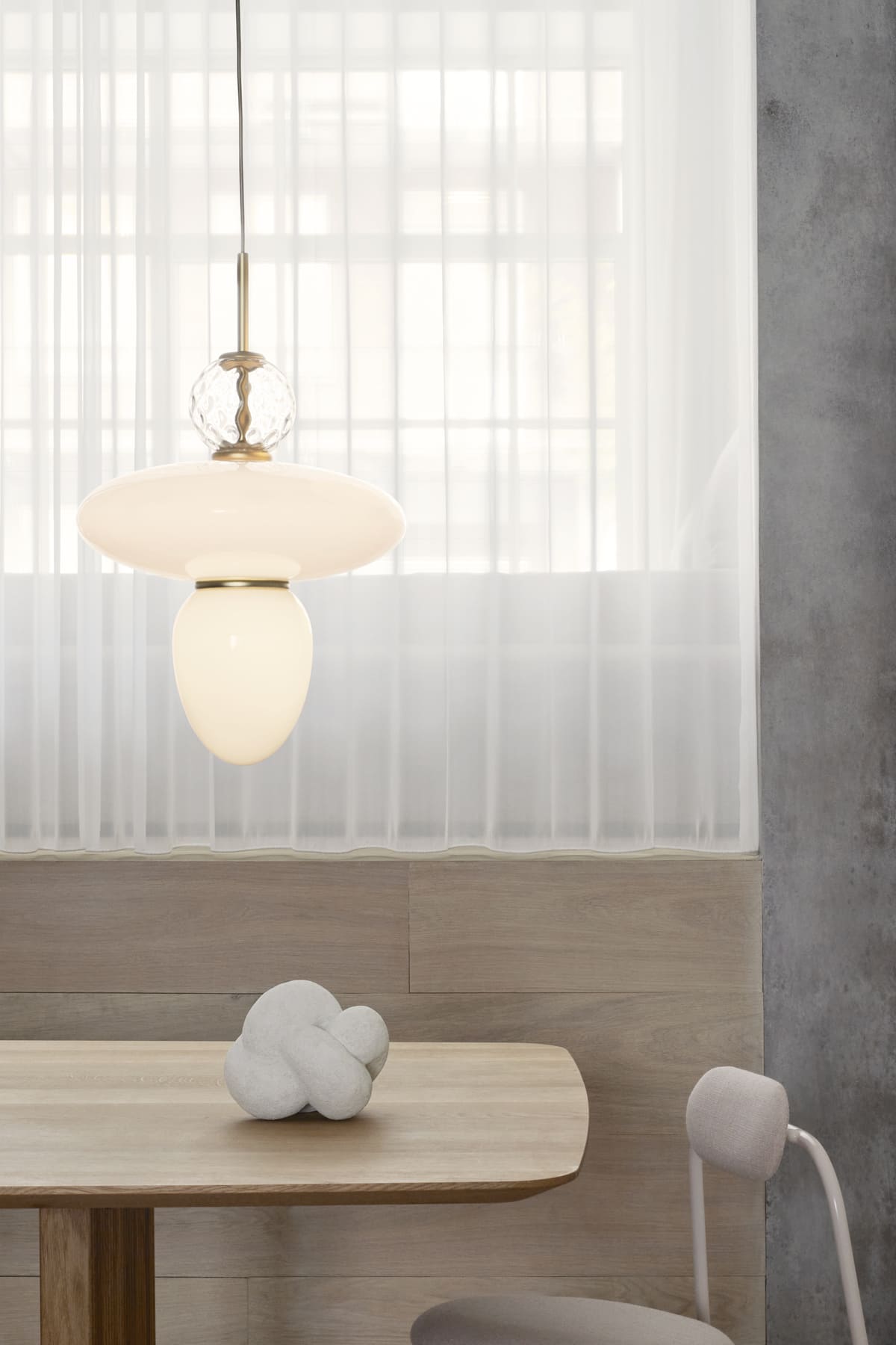 Минималистичная форма абажура и матовые декоративные элементы подвесного светильника Nuura Rizzatto 43 делают его изящным и элегантным. Модель является источником мягкого ровного света. Лампу можно регулировать по высоте, создавая идеальную интерьерную композицию.