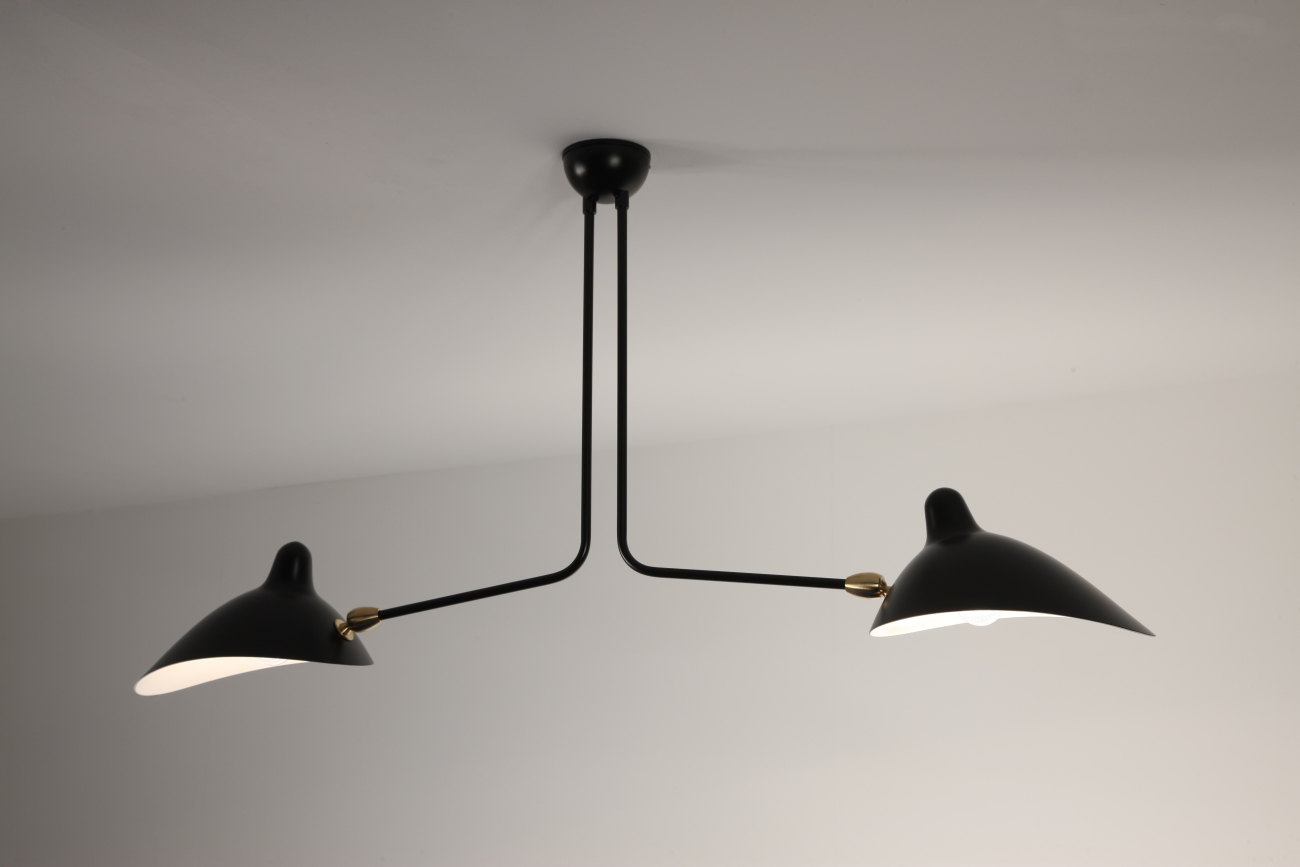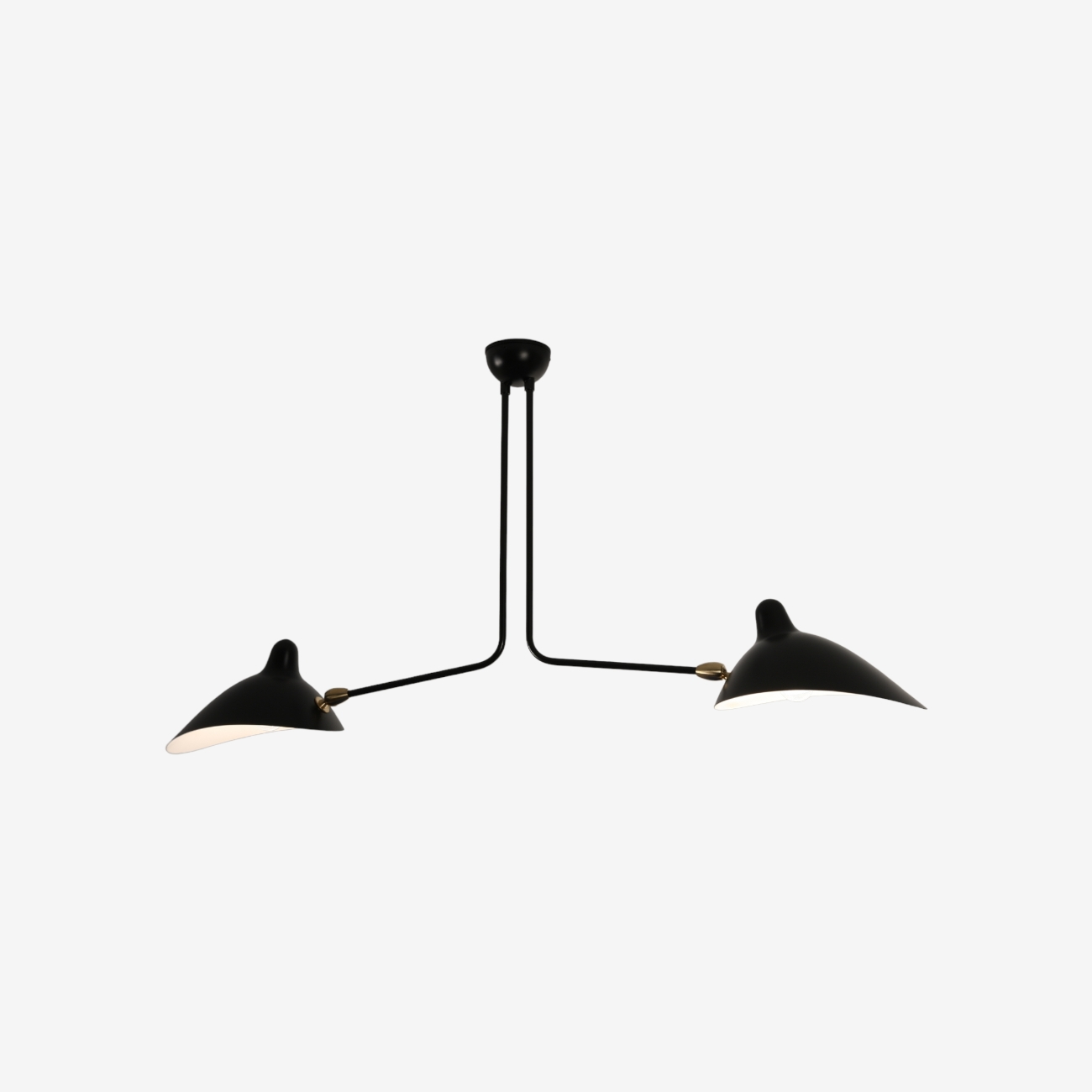 Подвесной светильник Two-Arm Ceiling Lamp от Serge Mouille сочетает в себе простоту и привлекательность. Минималистичный дизайн и нейтральная цветовая гамма делают его одинаково подходящим дополнением как домашнего, так и офисного интерьера.