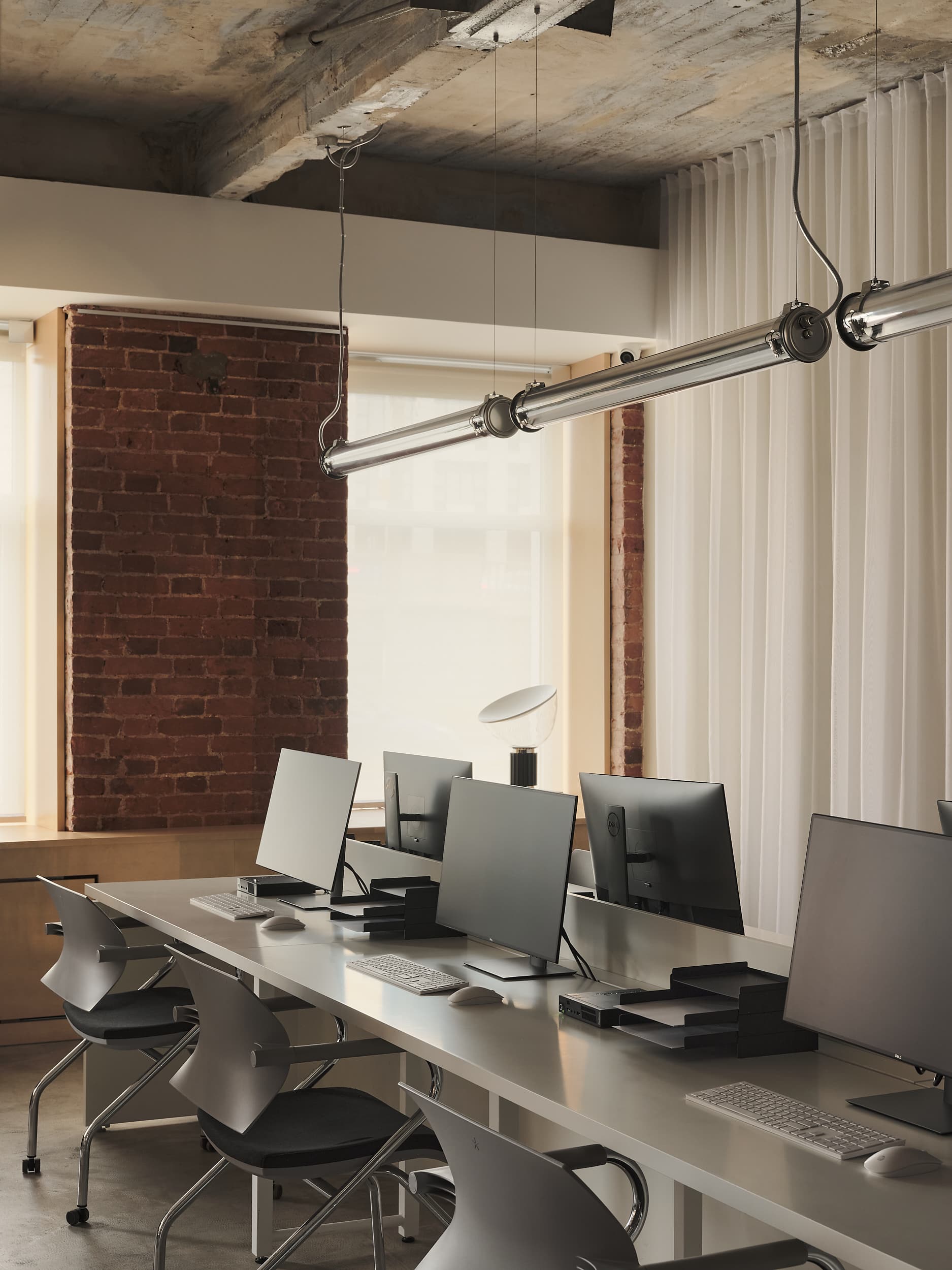 Светодиодный светильник Sammode Brueghel идеально подходит для использования в качестве подвесного или потолочного. За счёт интенсивного и направленного света он станет хорошим выбором для офисной зоны. Его жалюзи с низкой яркостью устраняют блики, обеспечивая исключительный визуальный комфорт в рабочей среде.