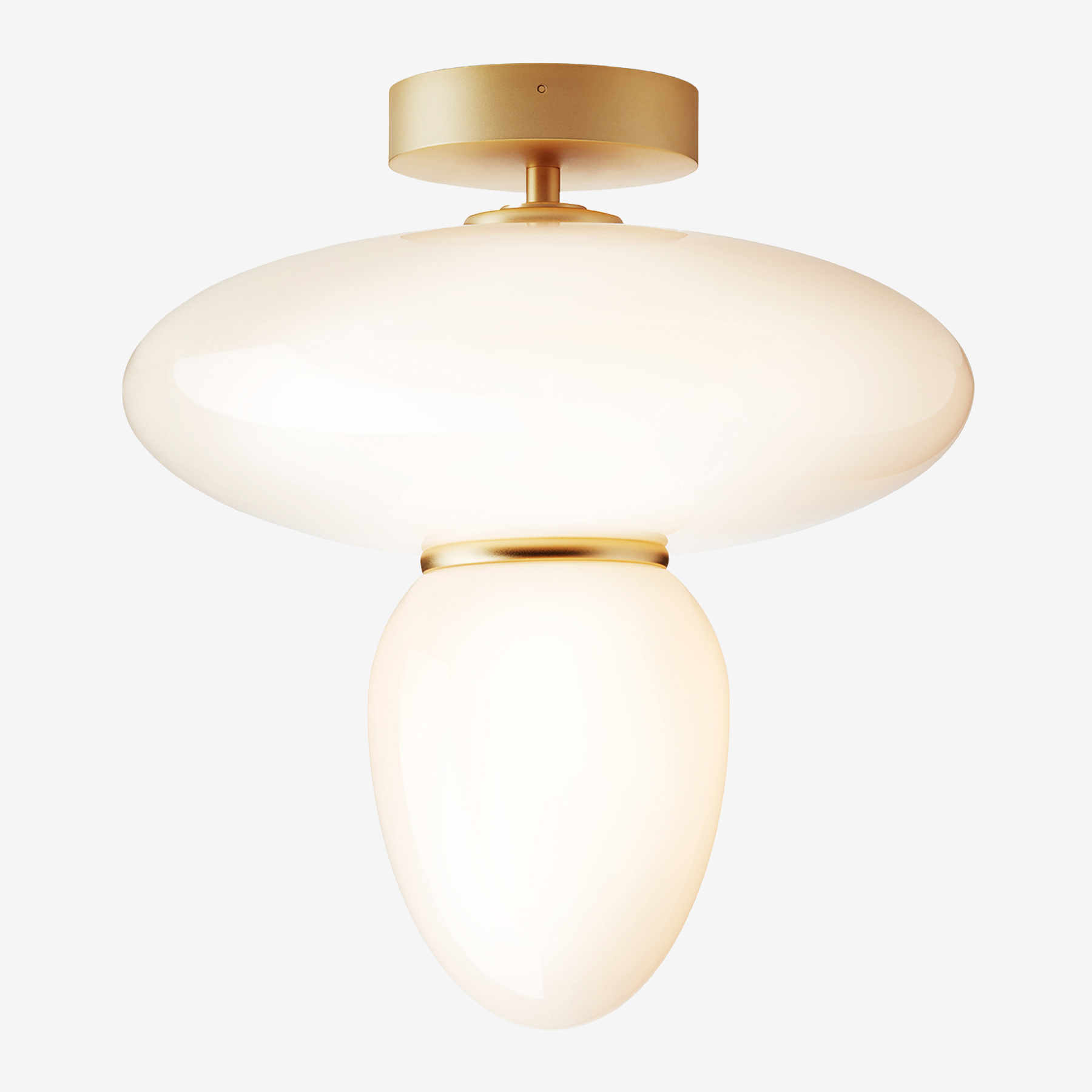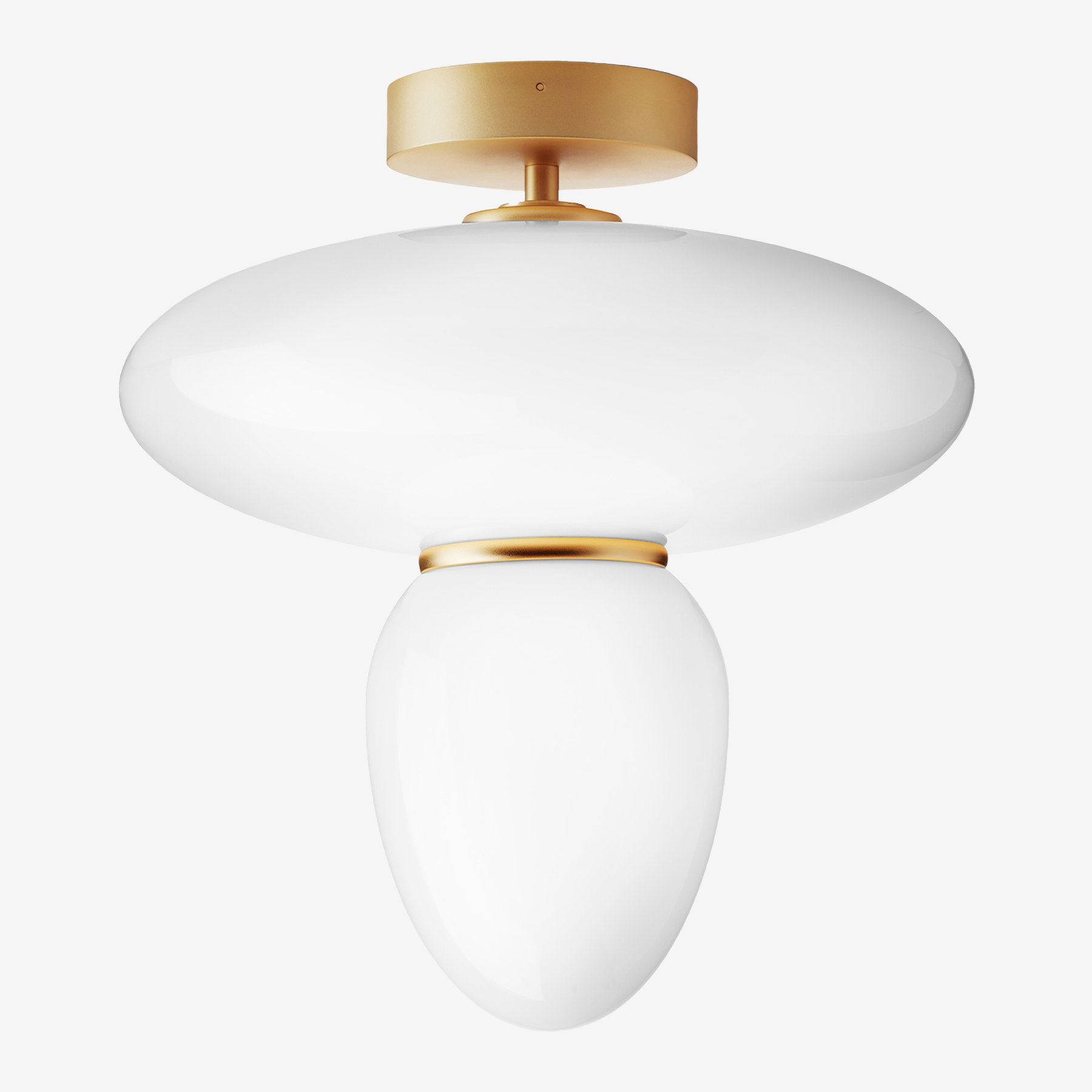 Потолочный светильник Nuura Rizzatto 42 имеет простую геометрическую форму. Матовая металлическая кайма дополняет лаконичный стеклянный абажур. Плафон, разделённый на две части декоративным элементом, создаёт рассеянный мягкий световой поток.