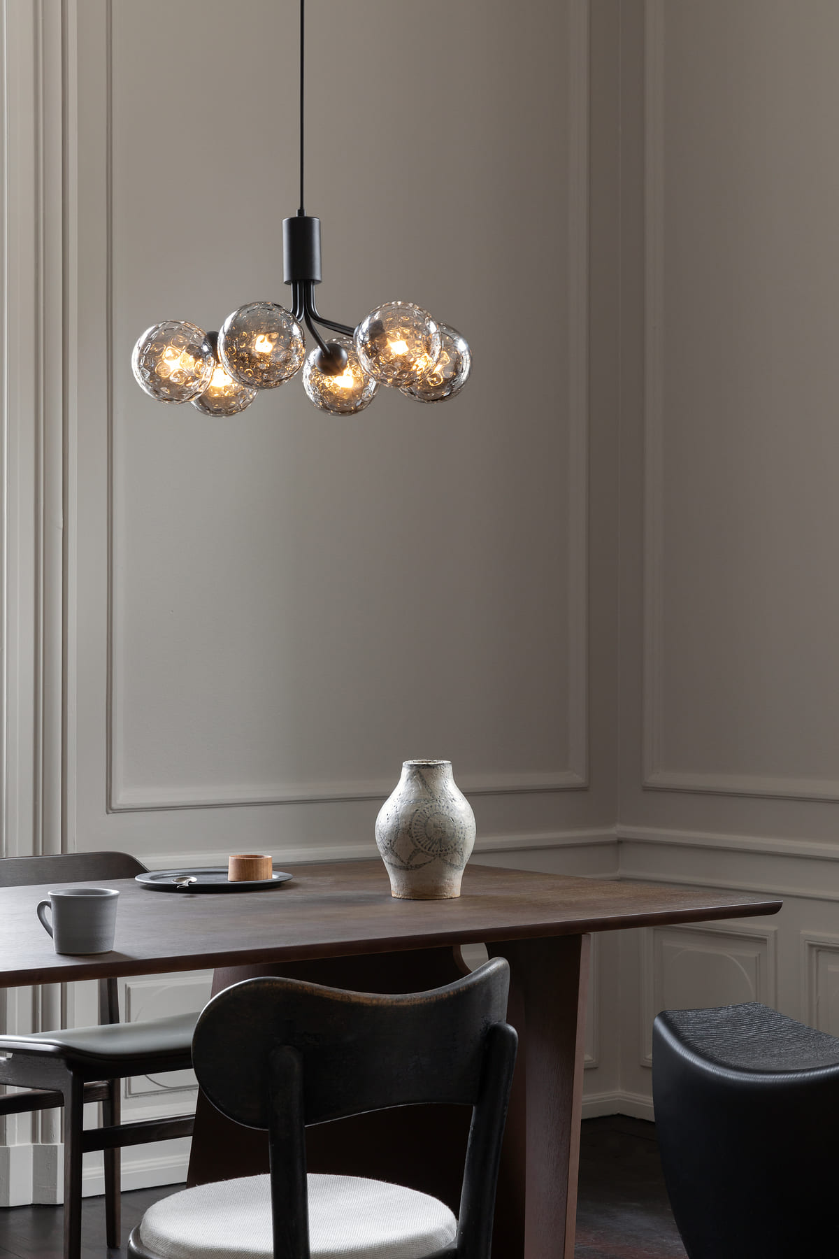 Дизайн подвесной люстры Nuura Apiales 6 был вдохновлён дикими зонтичными цветами. Уникальная форма делает модель более функциональной, позволяя рассеивать свет в различных направлениях. Благодаря необычной фактуре стекла можно добиться причудливых оптических эффектов.