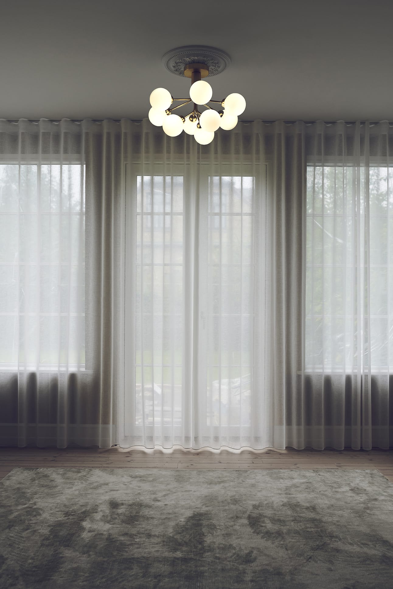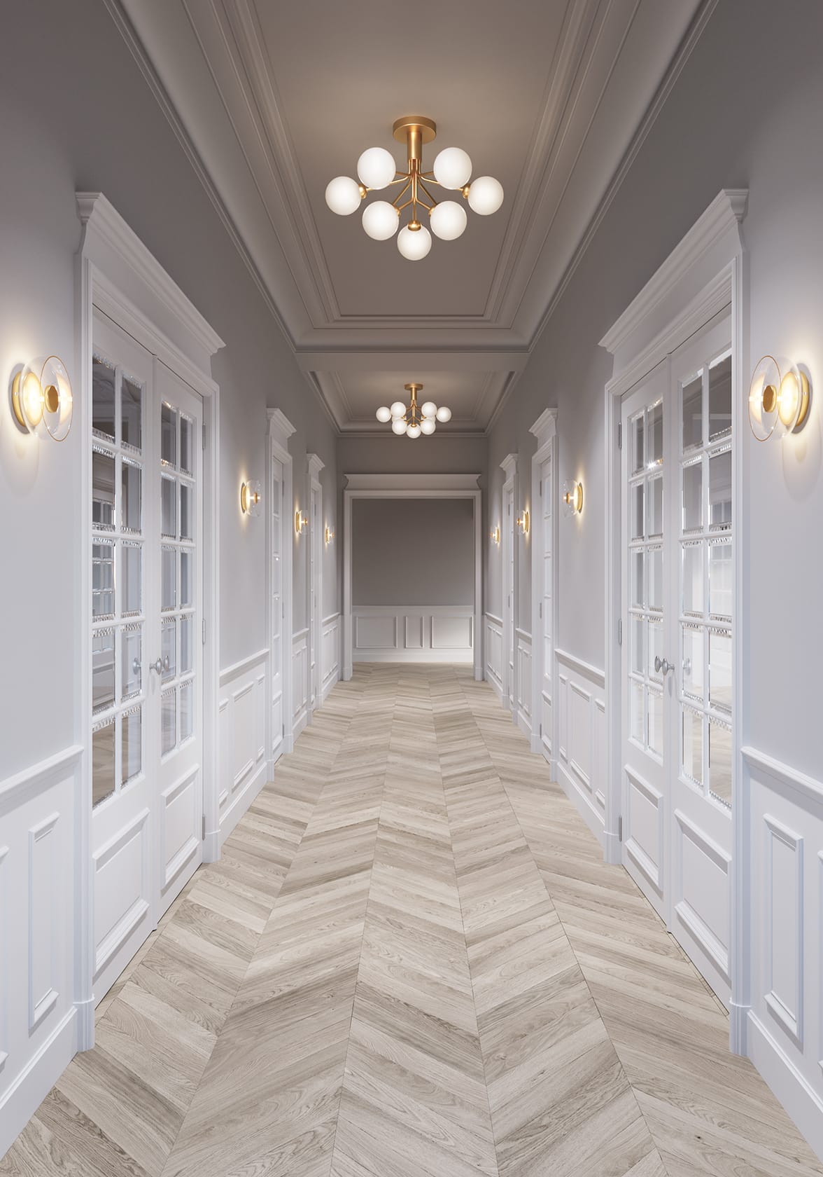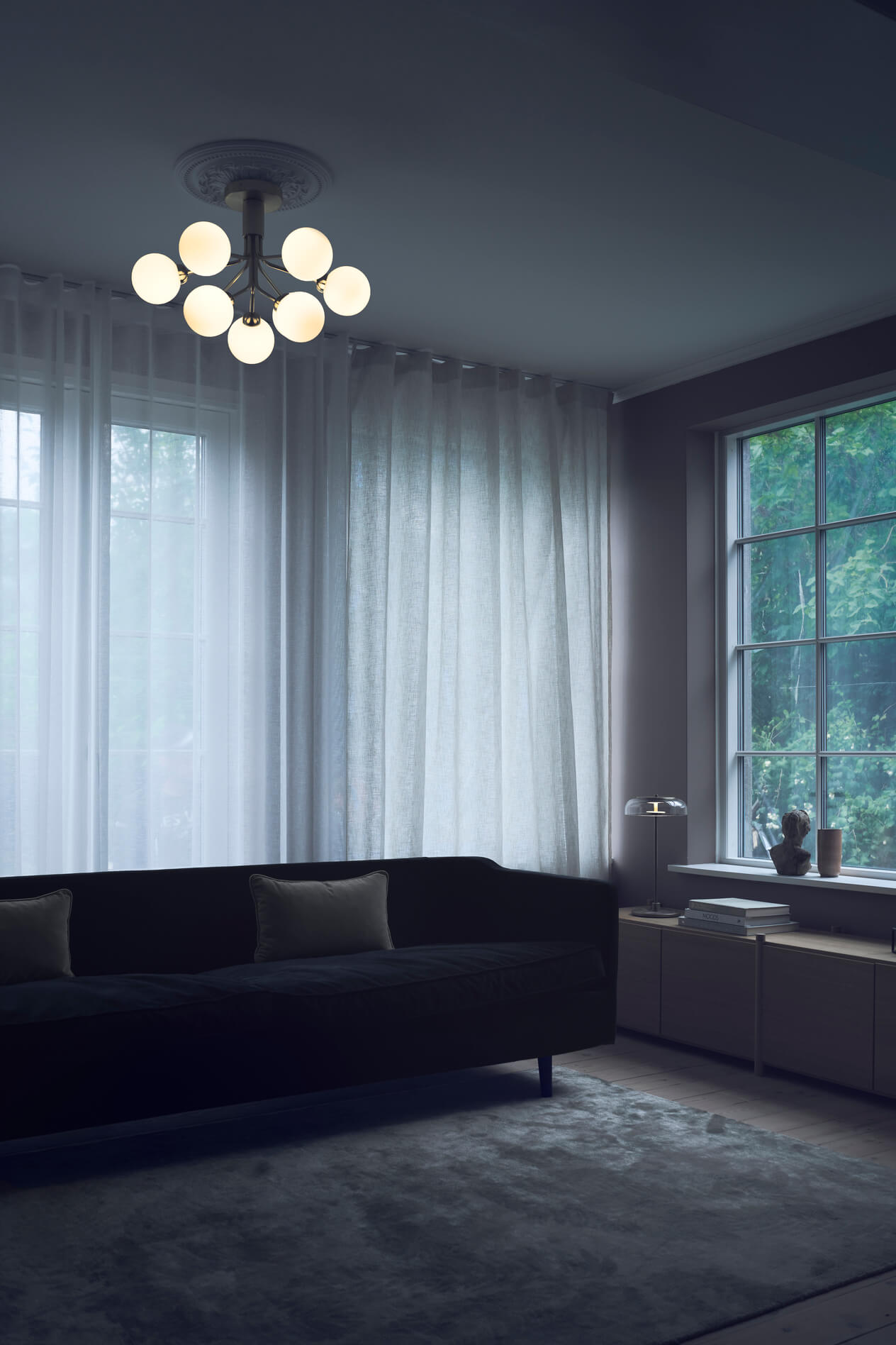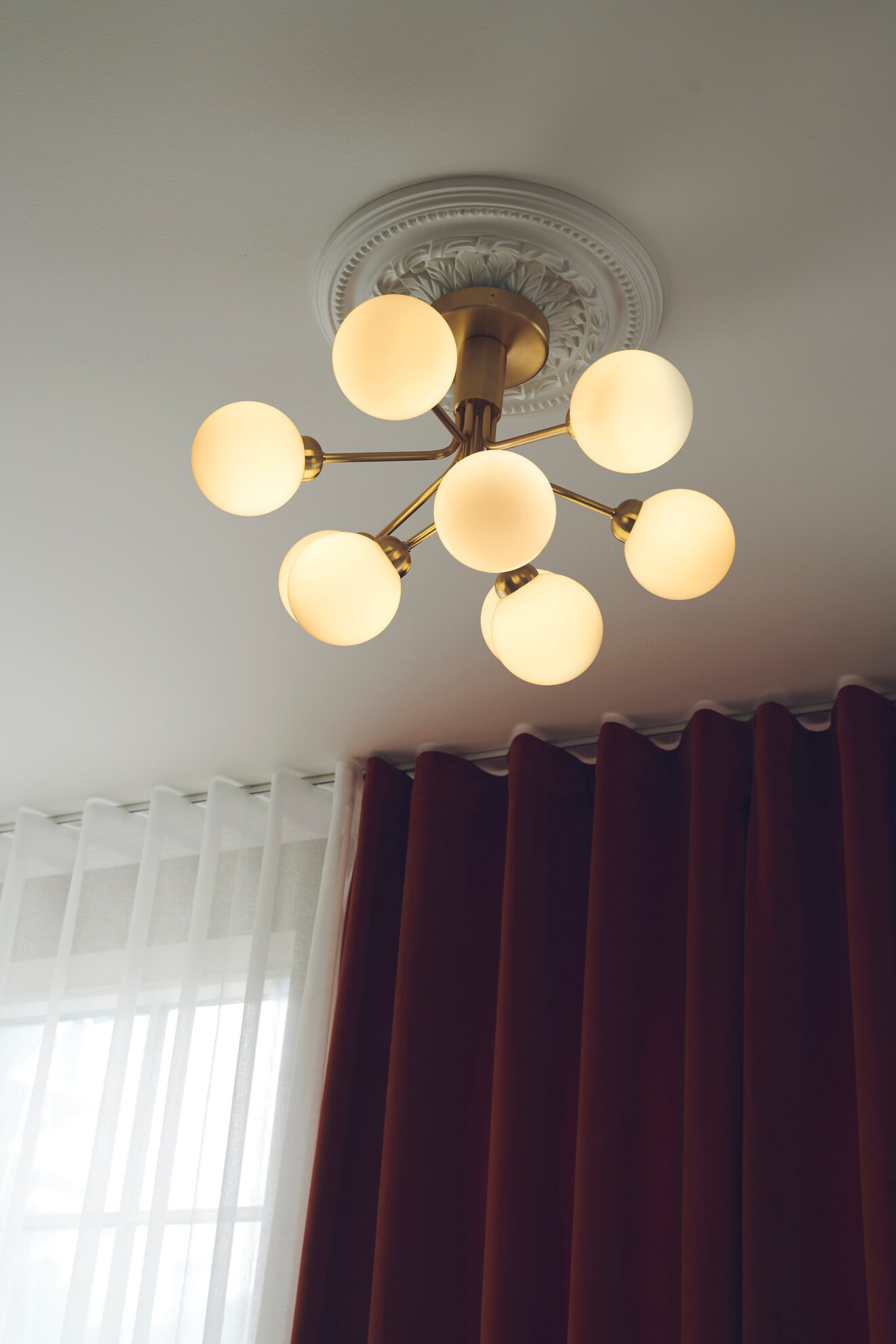 За счёт небольшой высоты люстру Apiales 9 удастся разместить в интерьерах с невысокими потолками, включая коридоры и входные зону.