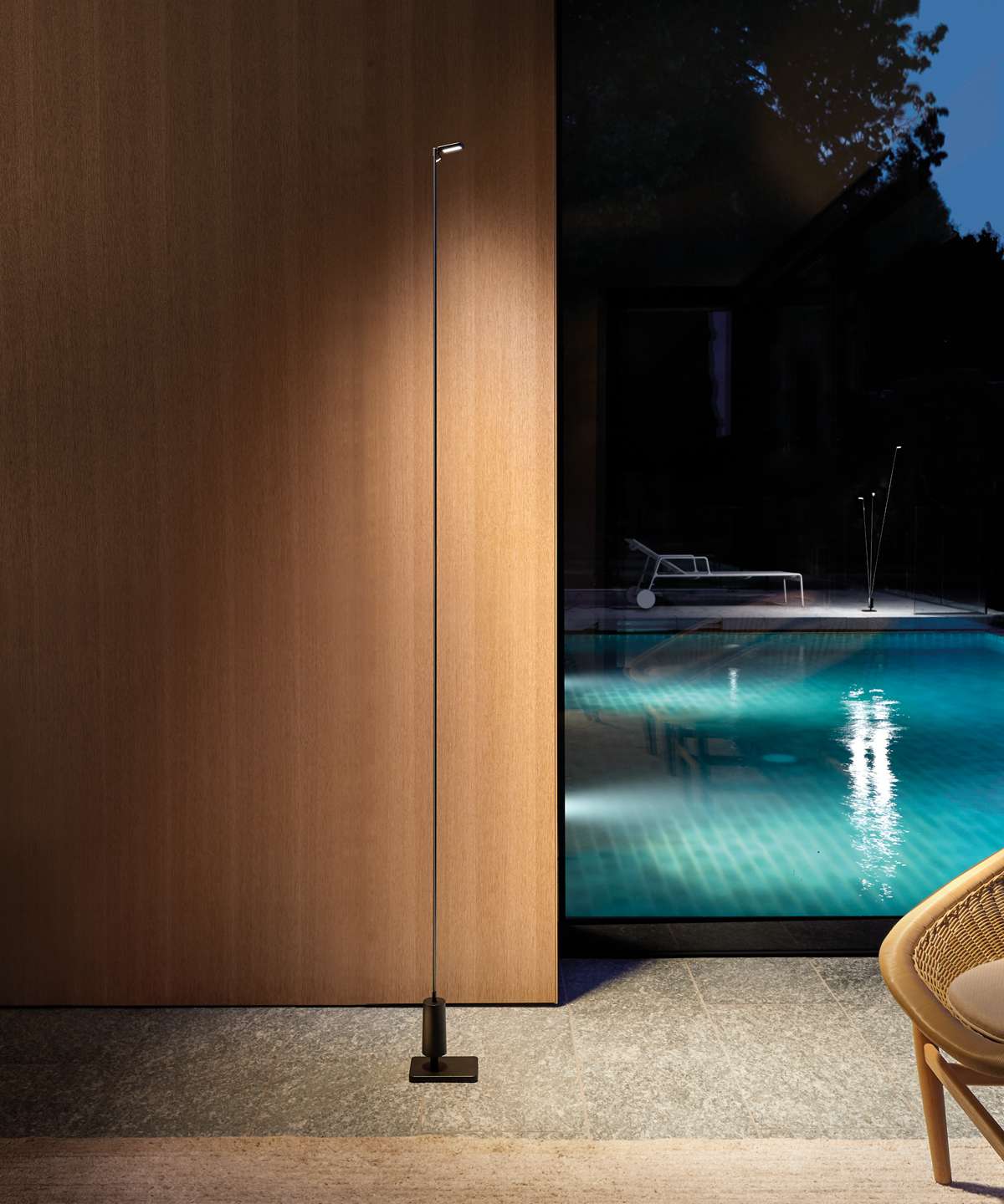 Уличный торшер Flia Outdoor выделяется своей способностью сочетать технологические аспекты со строгими и выразительными формами. Миниатюризация источника света является ключевым фактором проекта. Корпус из карбоновой фибры установлен на цилиндрическом основании из нержавеющей стали, что придаёт придает торшеру прочность, легкость и гибкость.