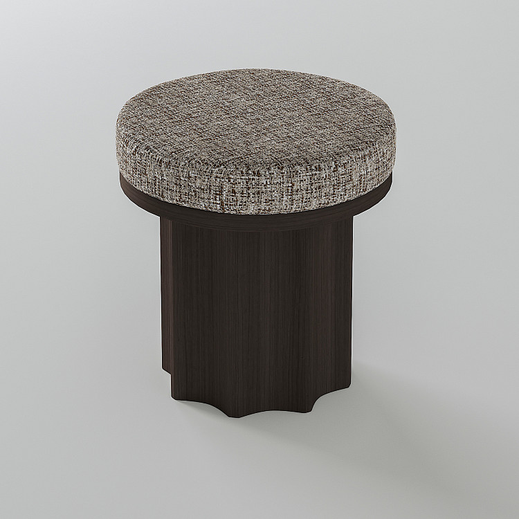 Модель Modénature Ikaria Stool от Alexander Beloborodov представляет собой диалог геометрий. Горизонтальная плоскость сиденья контрастирует с мощной вертикальной опорой. Опора вырезана из цельного куска дерева и имеет форму восьмигранника со скошенными гранями. Такое решение превращает функциональный элемент в центральный декоративный акцент предмета.