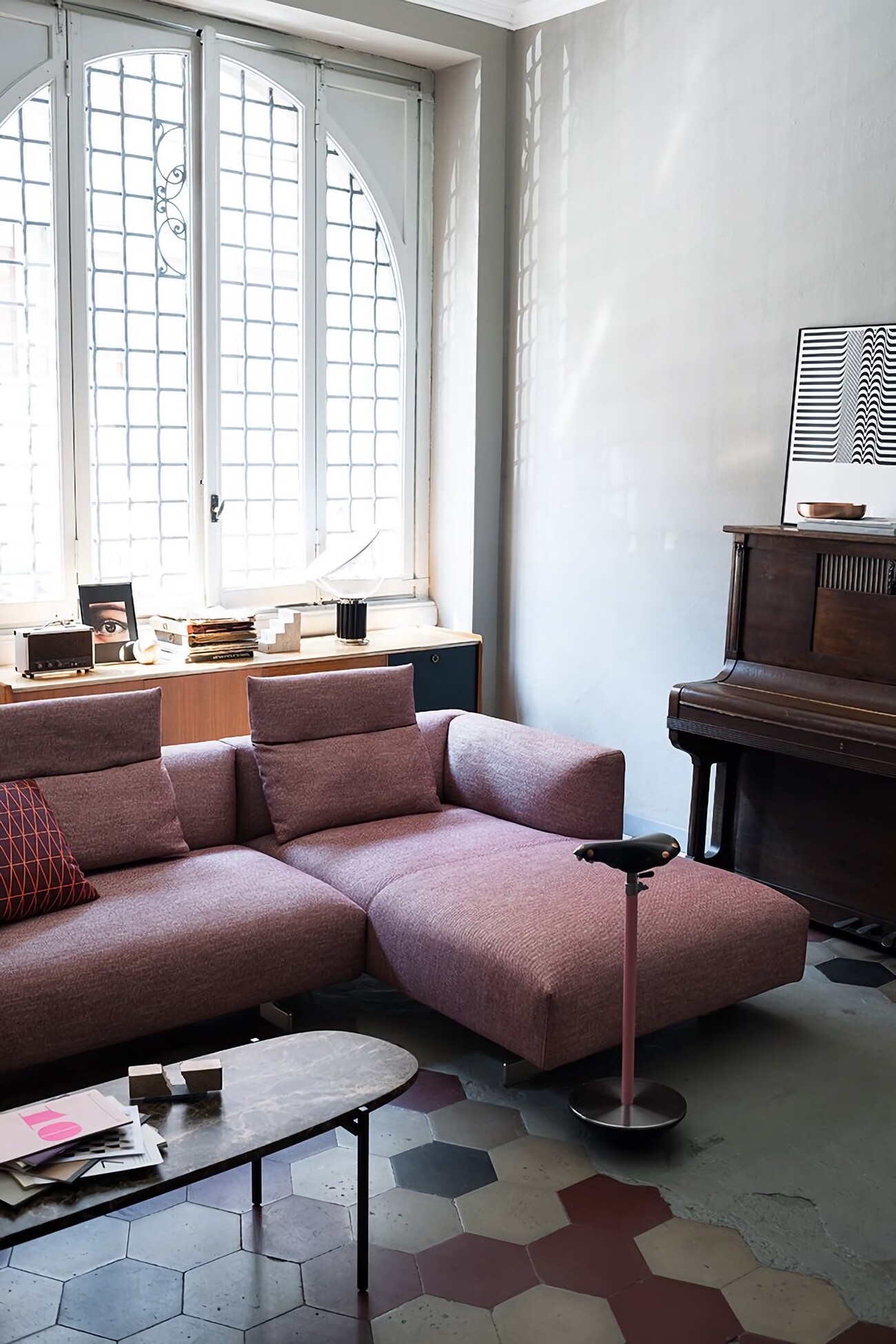 Табурет Zanotta Sella родился из концепции «готовой вещи», в качестве которой выступило кожаное седло гоночного велосипеда. Табурет был задуман в качестве точки опоры для тех, кто размещается стоя или полусидя. Самая необычная деталь изделия — массивное полусферическое основание из чугуна, позволяющее табурету наклоняться в разные стороны.