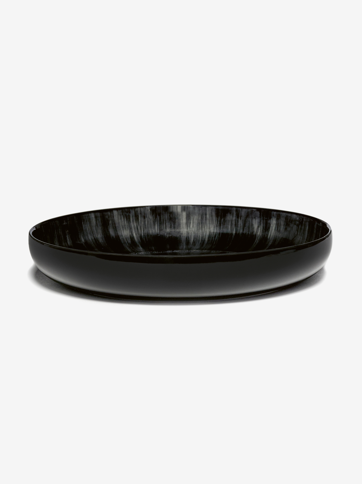 Дизайн глубокой тарелки Serax Deep Plate L White/Black Var. C Dè строится на технике ручной росписи, создающей эффект «деграде». Особое распределение красок формирует узор, будто стекающий от краёв тарелки к её центру. Основной материал модели — фарфор, делающий тарелку высокопрочной, но при этом тонкой.