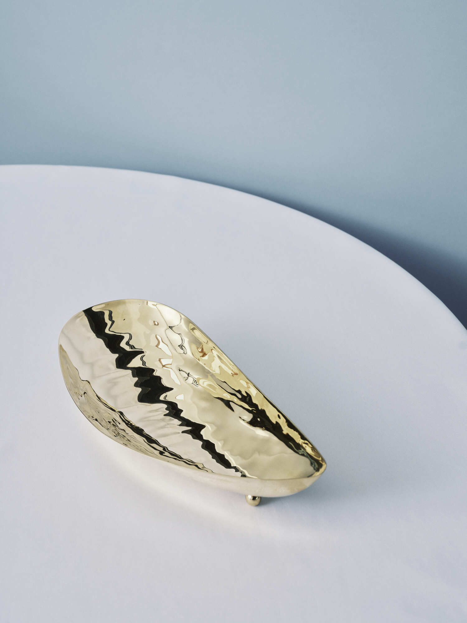 Дизайн сервировочного блюда Serax Bowl Marcel M brass Les Objets Mouleversants вдохновлён творчеством бельгийского художника Marcel Broodthaers, известного своими сюрреалистичными сюжетами. Блюдо, изначально представленное в фарфоре, обрело новое воплощение в благородной латуни с зеркальной полировкой. Необычная форма предмета посуды в точности повторяет силуэт морской устрицы.