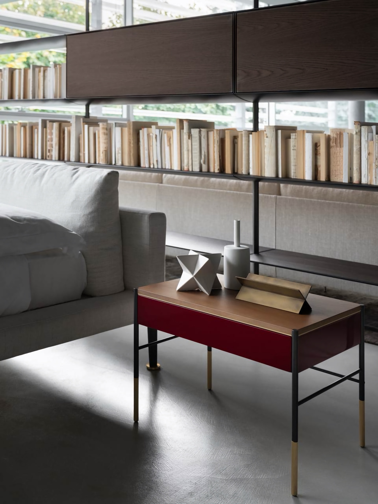 Прикроватная тумба Living Divani Era Comodino — минималистичный предмет мебели с элегантными контурами. Корпус тумбы удерживается тонким стальным каркасом, образуя лёгкую, но при этом прочную конструкцию. Ящик Era Comodino оснащён системой плавного закрывания.