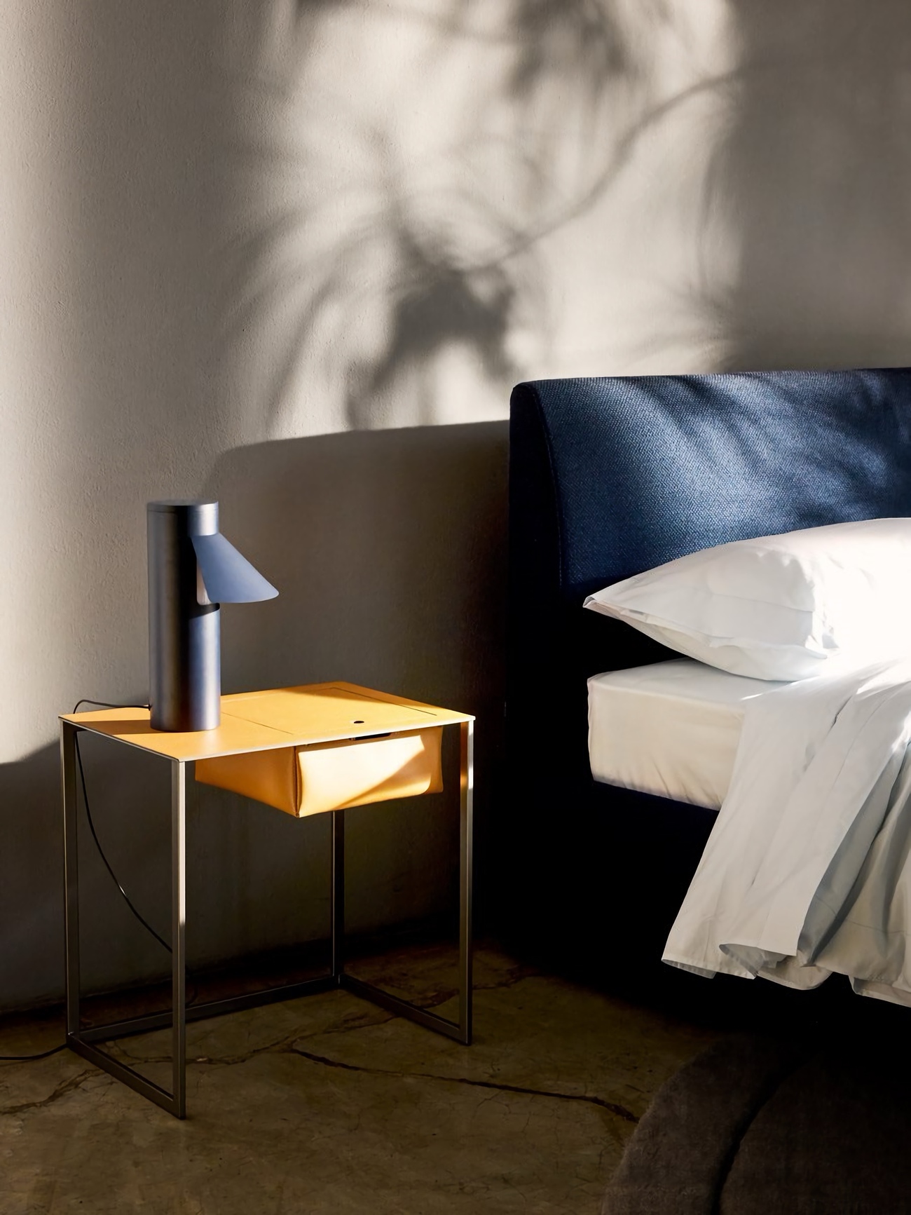 Прикроватный столик Zanotta Taschino доступен в различных вариантах отделки. За подробностями можно обратиться к менеджерам Laboratory Dome.
