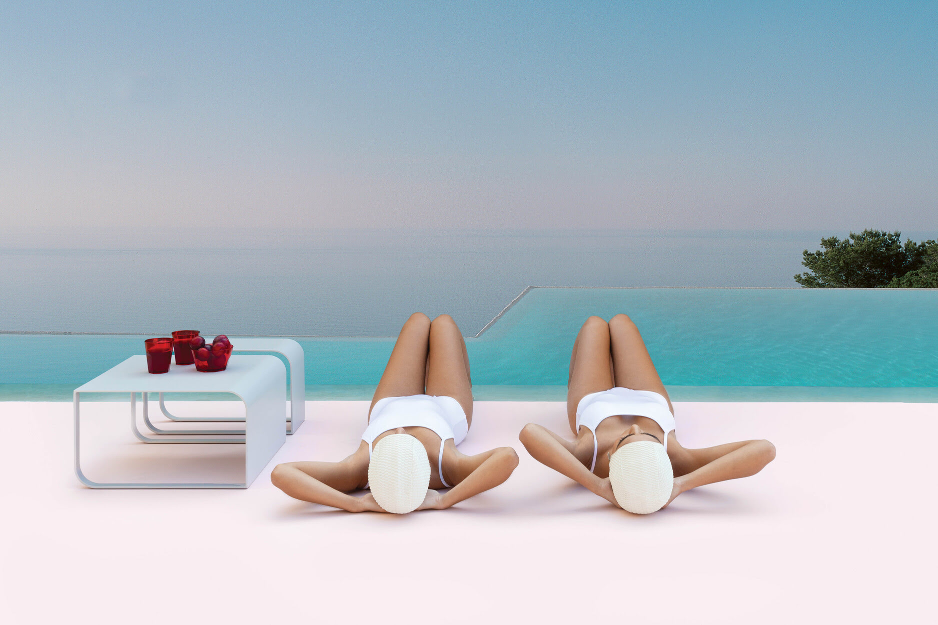 Уличный стол Arumi 3 Table изготовлен из термолакированного алюминия.