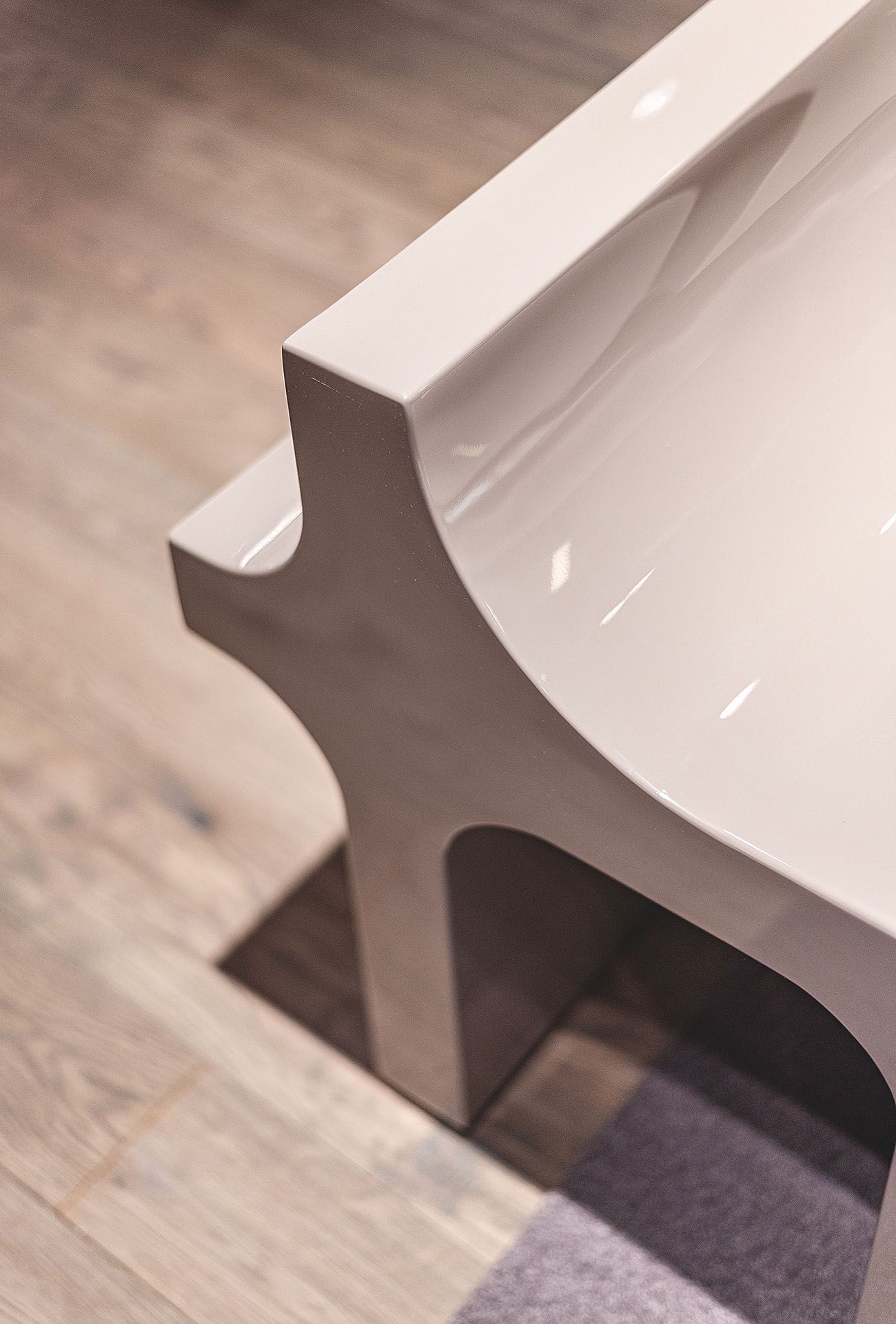 Уличный табурет Baxter Dharma — яркий представитель постмодернизма. Возможная цветовая палитра, позаимствованная у картин David Hockney, идеально гармонирует с блестящей глянцевой поверхностью предмета мебели. Табурет с динамичным силуэтом станет главным украшением сада или веранды.