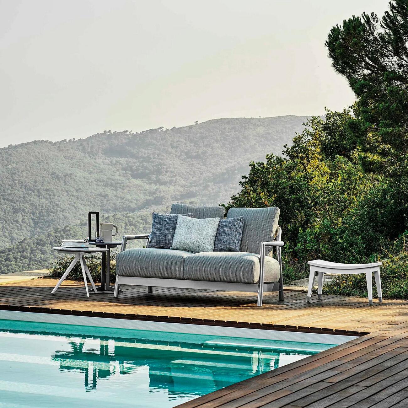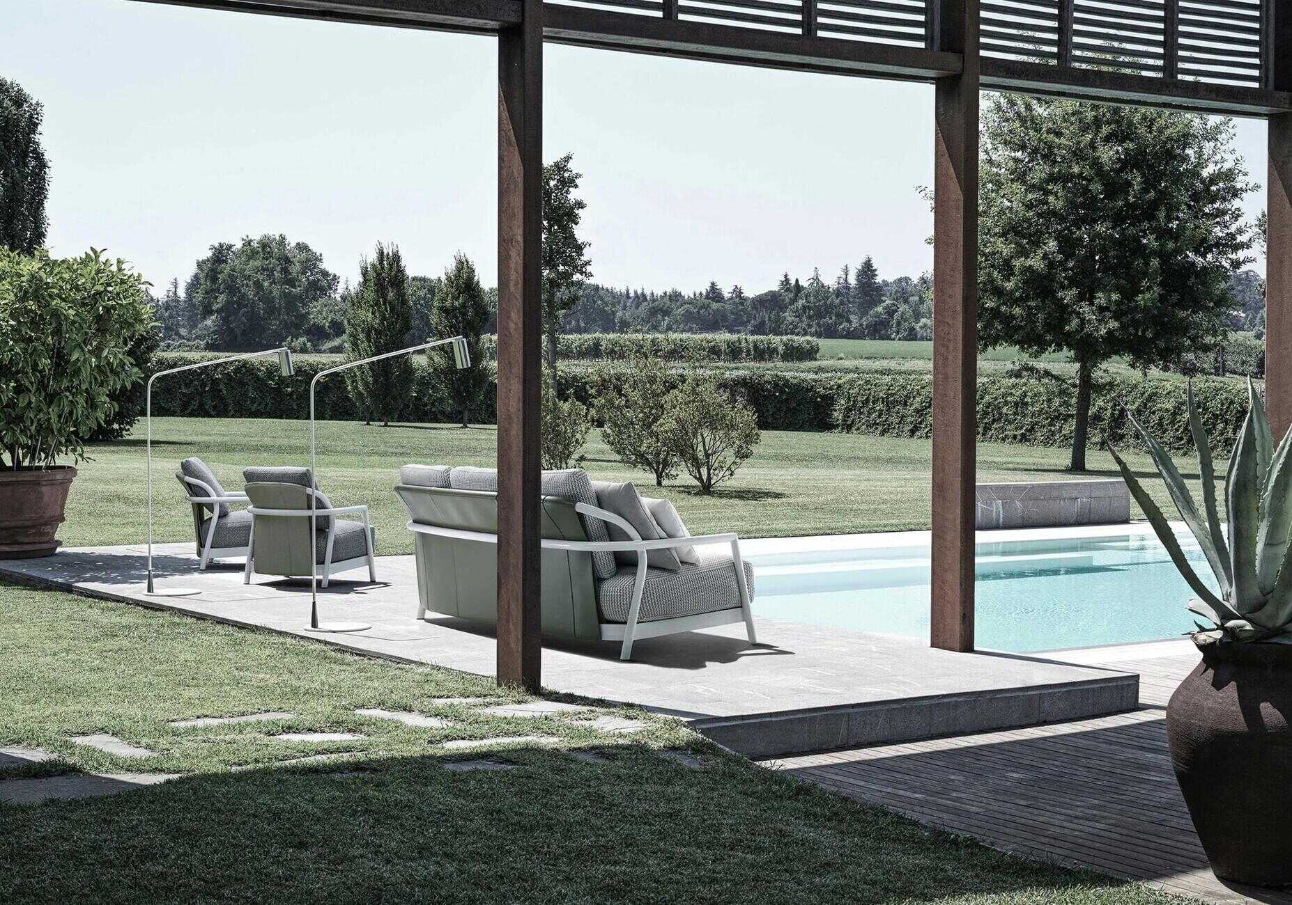 Уличный диван Flexform Alison Outdoor доступен в различных вариантах отделки. За подробностями можно обратиться к менеджерам Laboratory Dome.