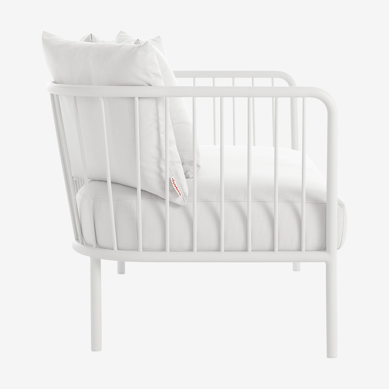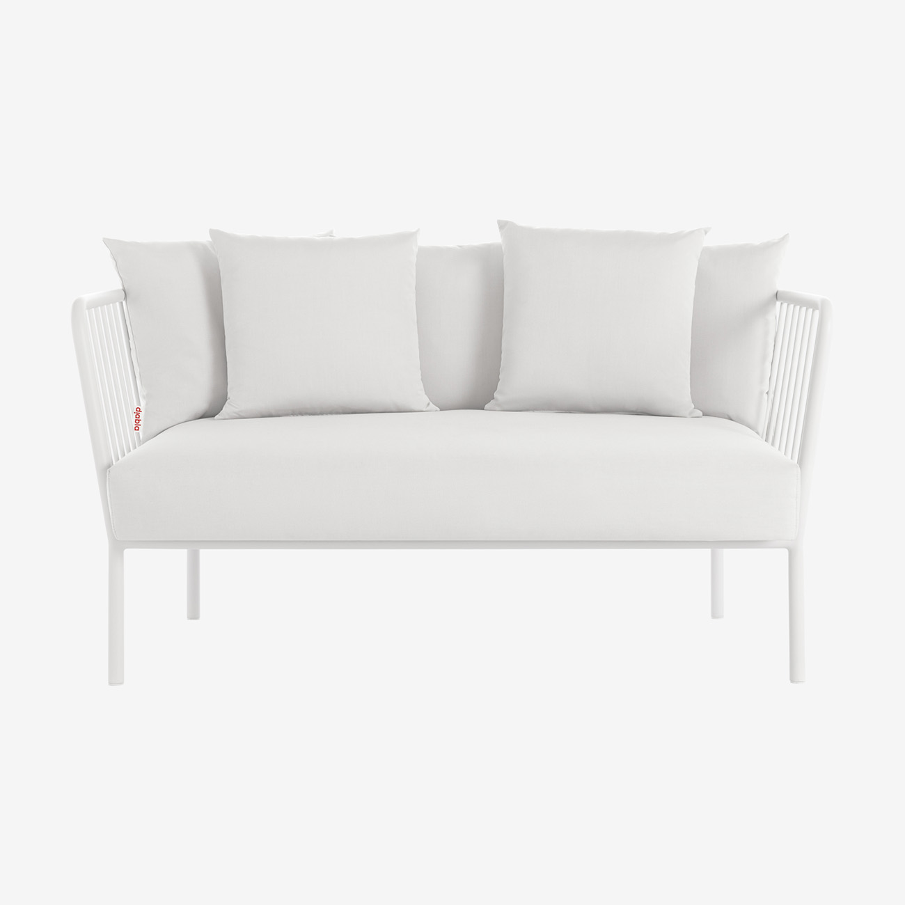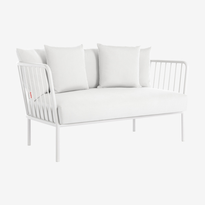 Каркас уличного дивана Diabla Arp 2 Seat Sofa изготовлен из алюминия с порошковым покрытием. Обивка съёмная, выполнена из пенополиуретана, покрытого водоотталкивающей тканью.