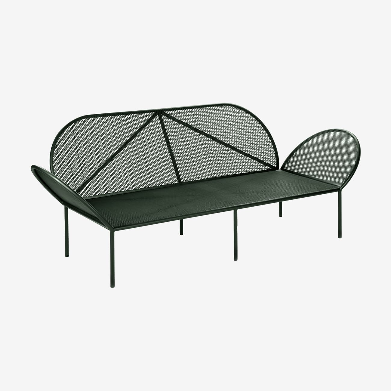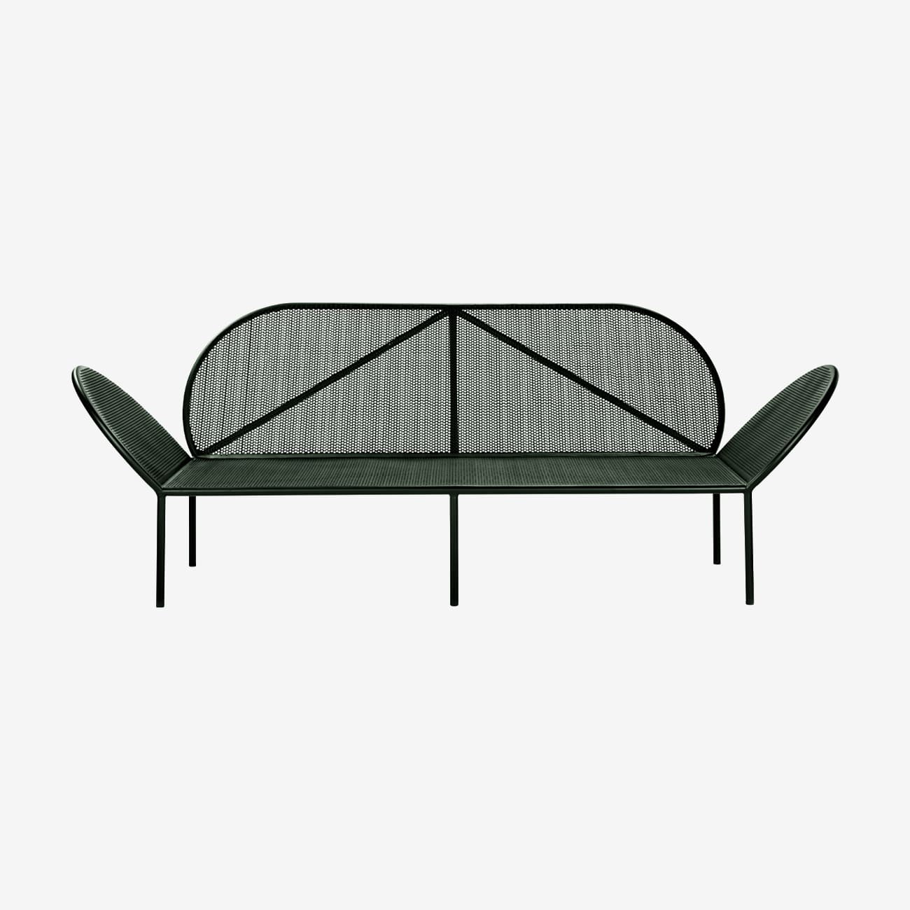 Уличный диван Sofa Fontainebleau Dark Green изготовлен из стали.