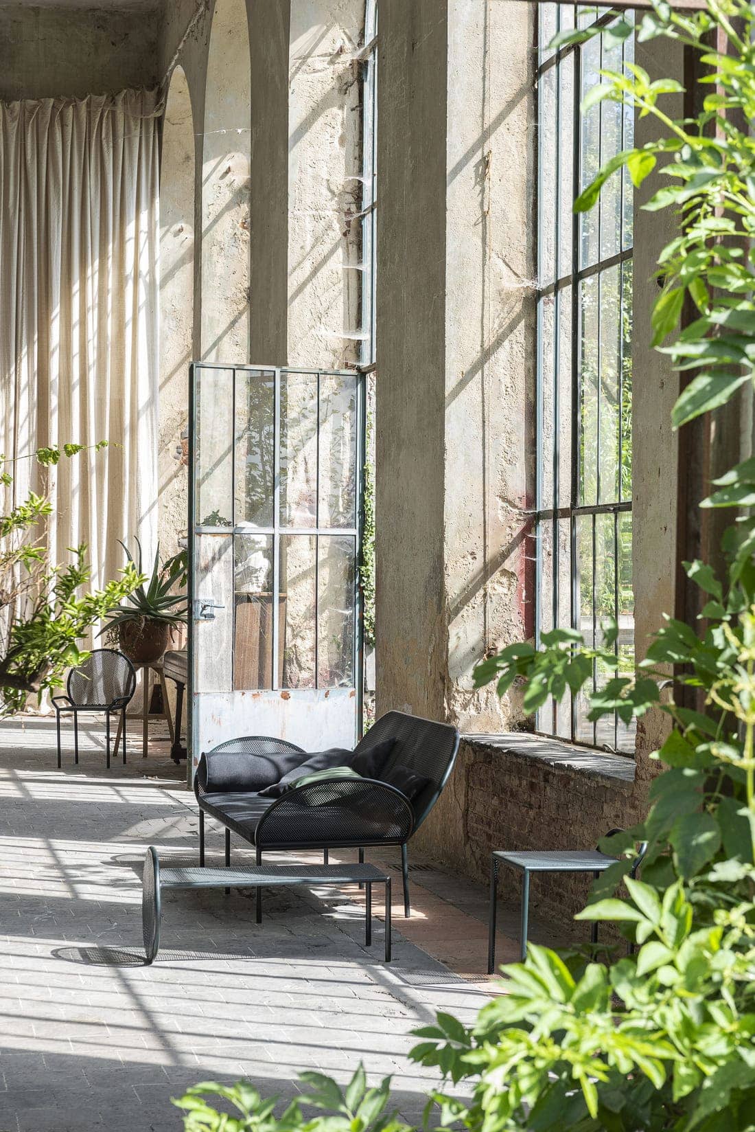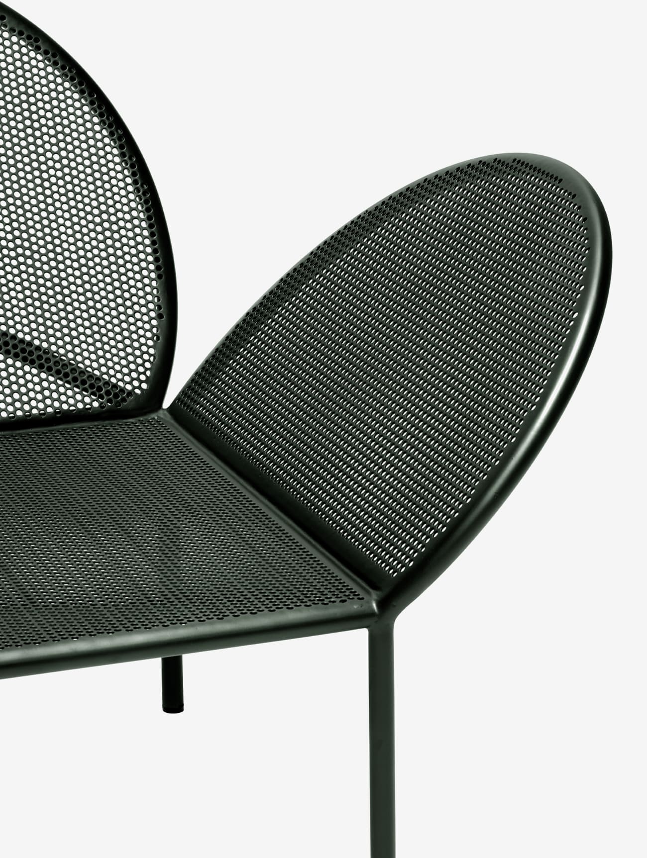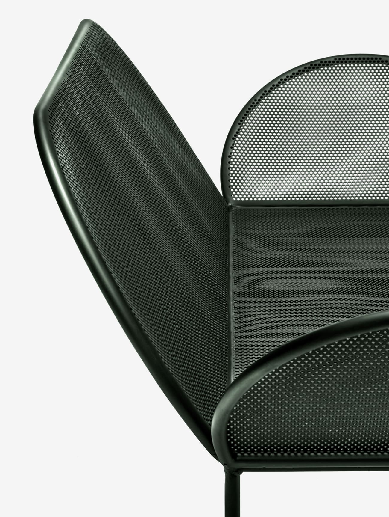 Уличный диван Serax Sofa Fontainebleau Dark Green имеет необычный силуэт. Расположенные под углом подлокотники идеально сочетаются с полукруглой спинкой. Тёмно-зеленый цвет дивана способен сделать предмет мебели органичной частью сада или террасы.