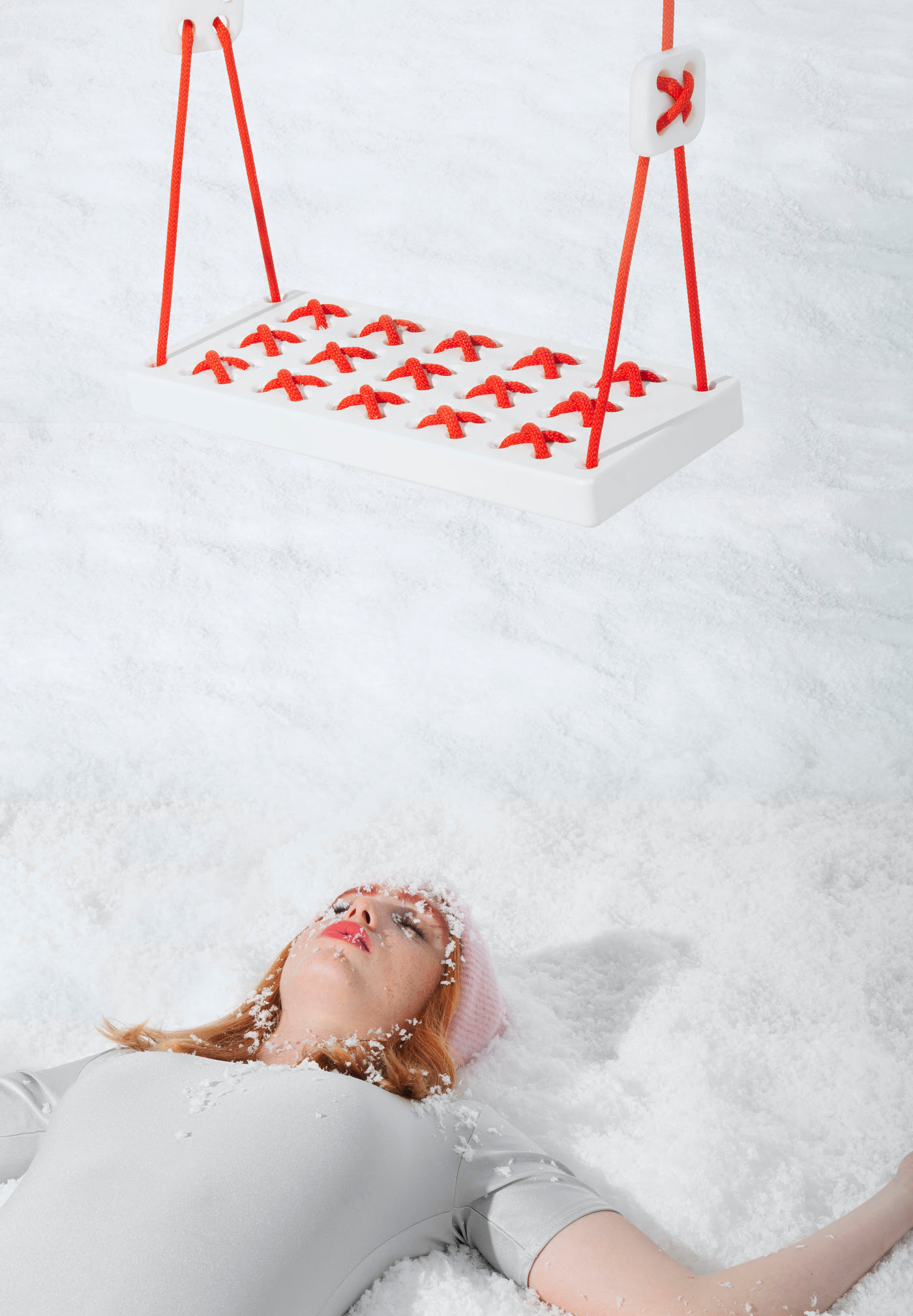 Компактный размер позволяет расположить уличные качели Diabla Lena Swing даже в небольших помещениях, например, барах. Прочный канат различных оттенков выступает в виде функционального и эстетического элемента. Стежки на сиденье, вдохновлённые традиционной вышивкой крестиком, добавляют качелям оригинальности и нетипичности.