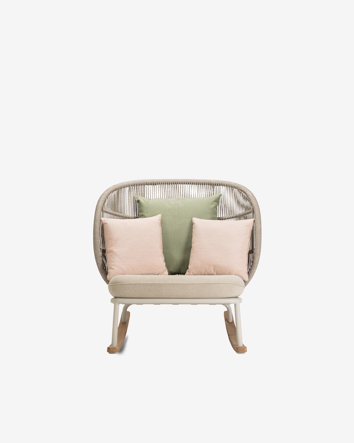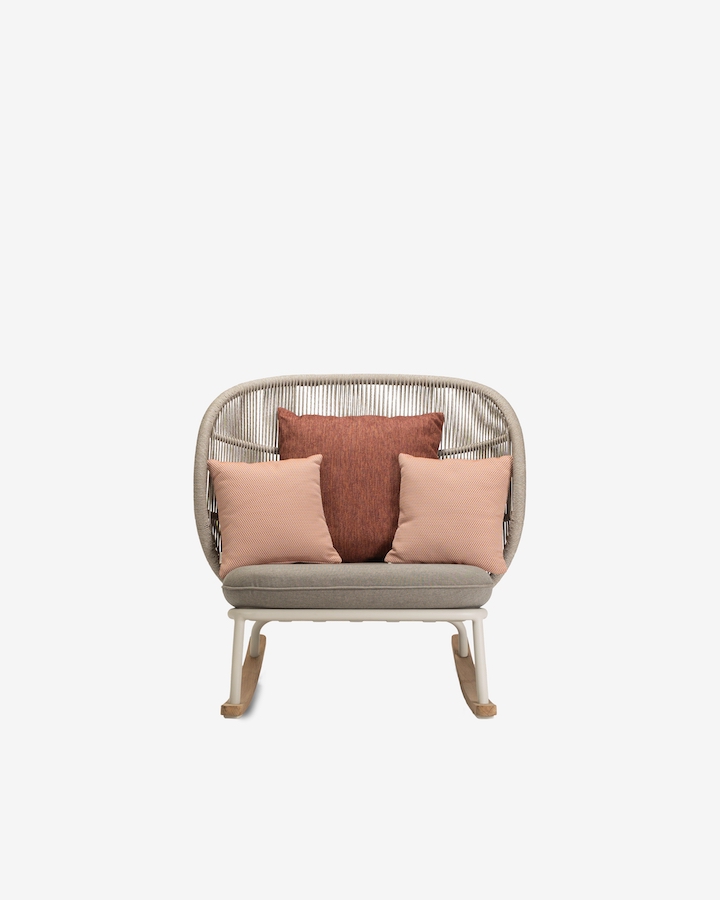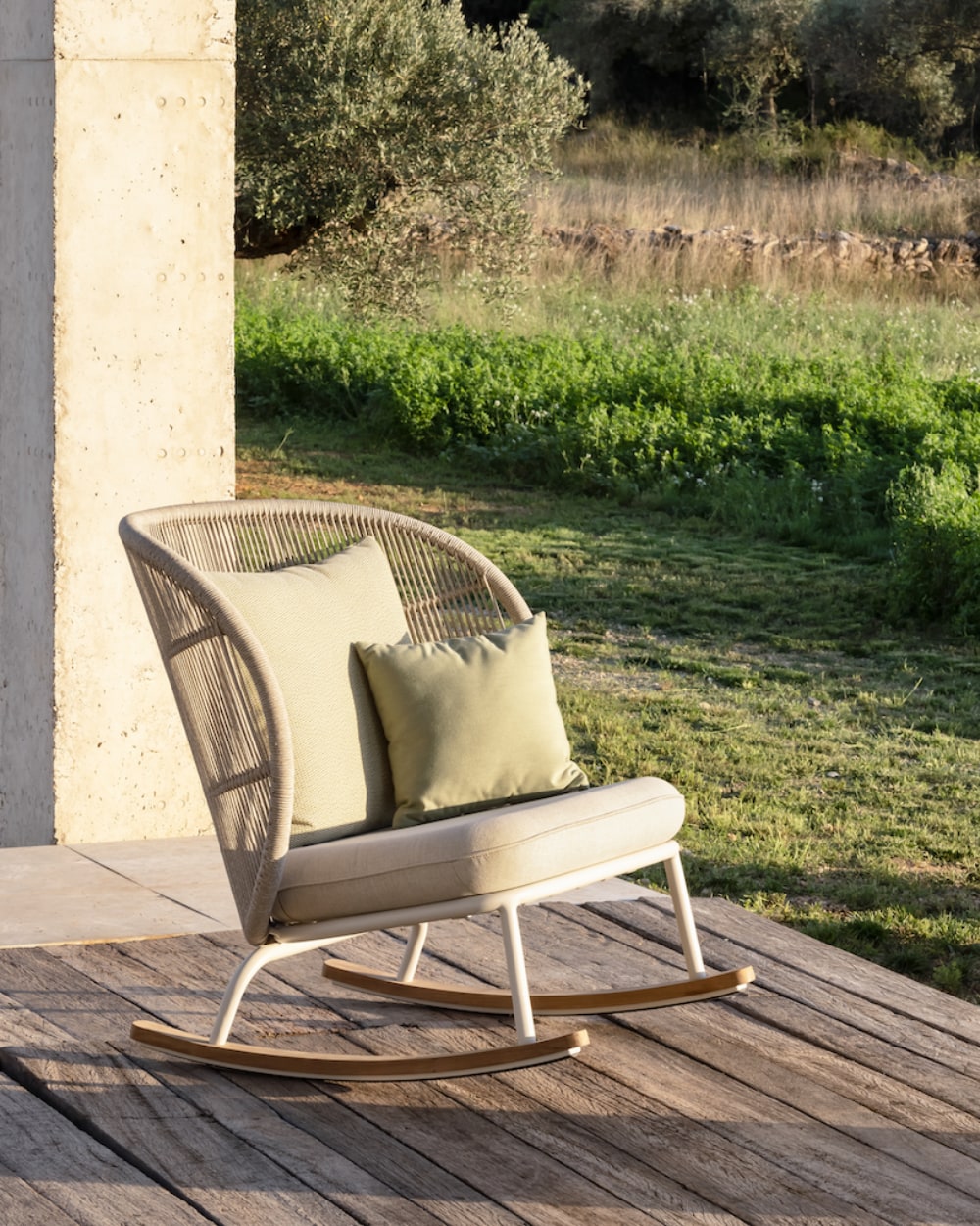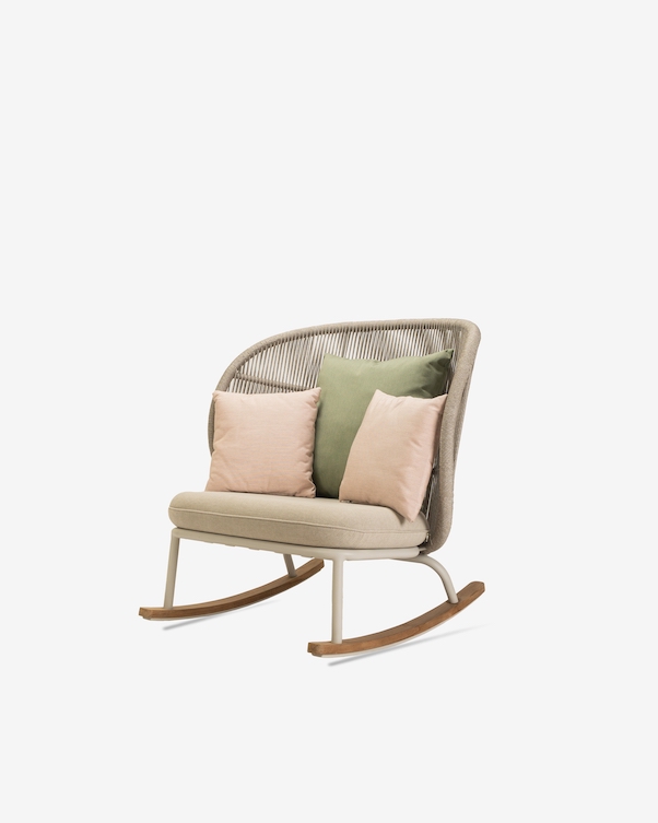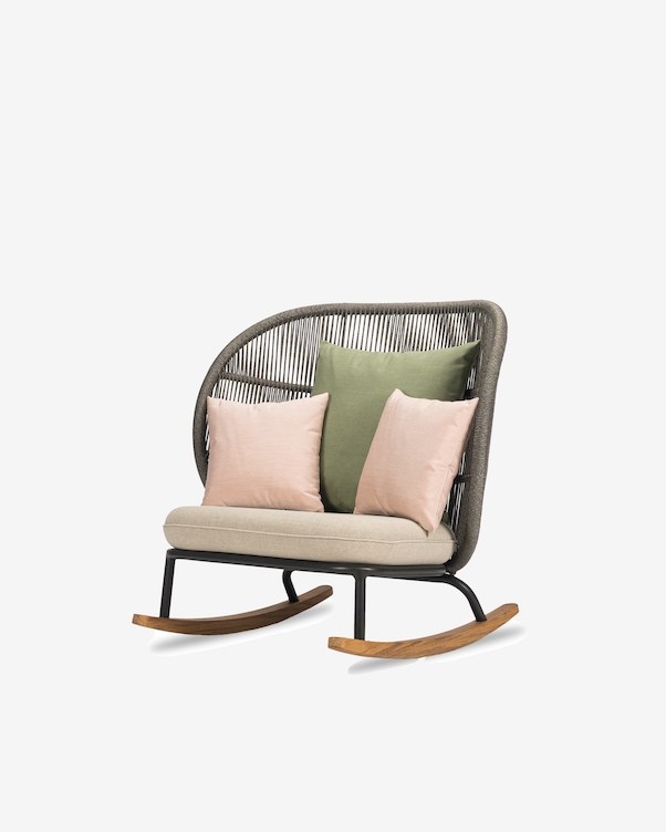 Погрузитесь в атмосферу истинного комфорта с уличным креслом-качалкой Vincent Sheppard Kodo Rocking Chair. Его высокая плетёная спинка и широкое сиденье обеспечивают удобство расположения, а деревянные полозья из тикового дерева сохраняют устойчивость всей конструкции. Уличное кресло-качалка доступно также в варианте с удобной подушкой для спины.
