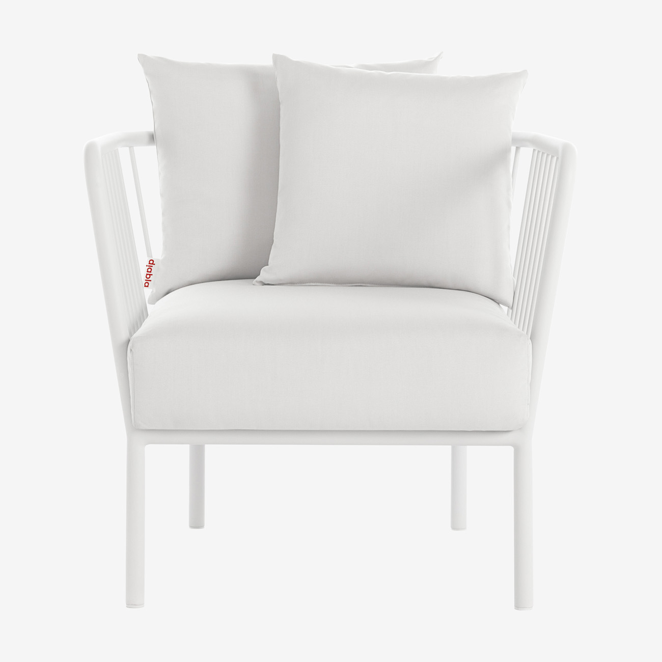 Каркас уличного кресла Diabla Arp Lounge Chair изготовлен из алюминия с порошковым покрытием. Обивка съёмная, выполнена из пенополиуретана, покрытого водоотталкивающей тканью.