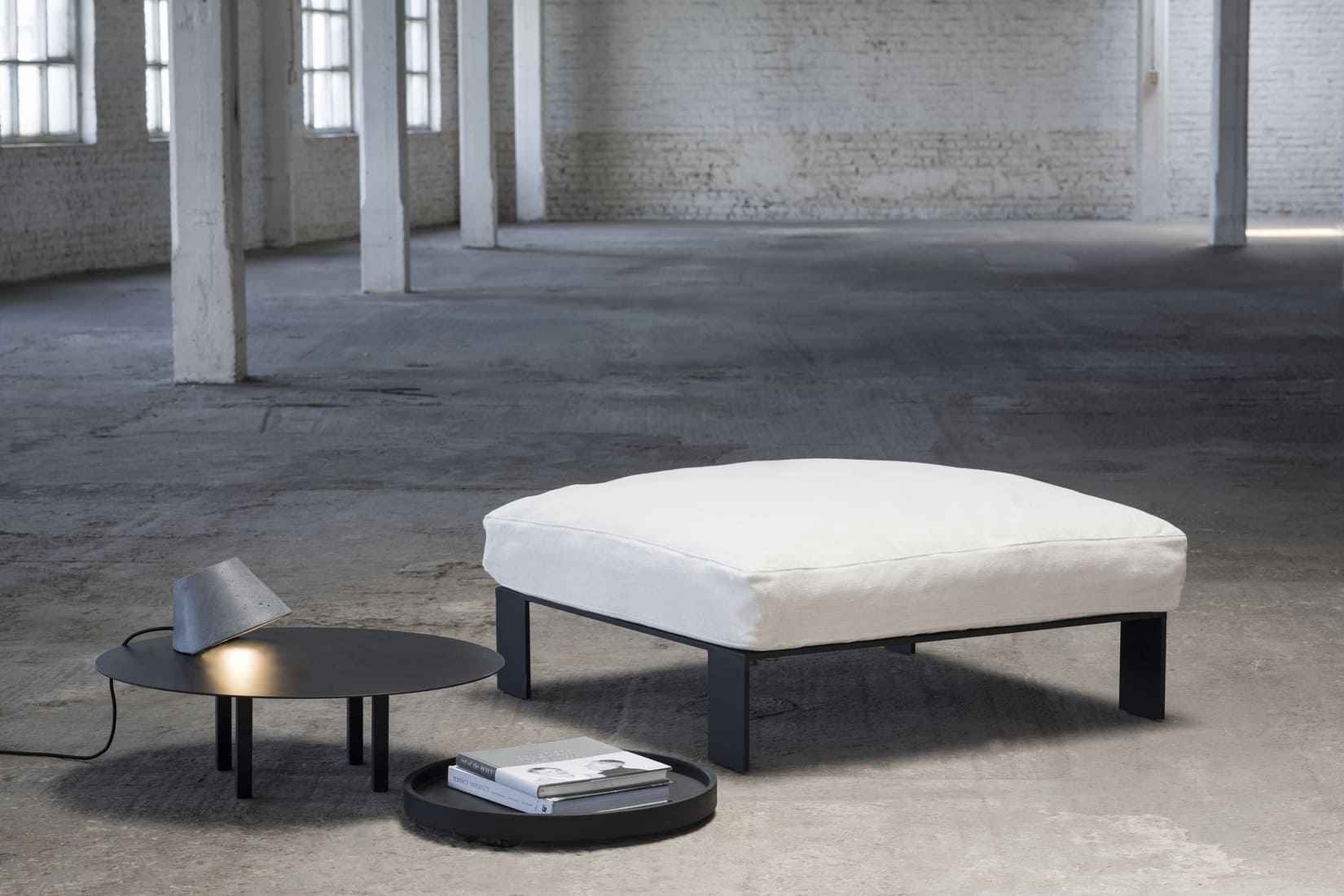 Уличный пуф Ottoman Outdoor изготовлен из алюминия и обивочного материала.