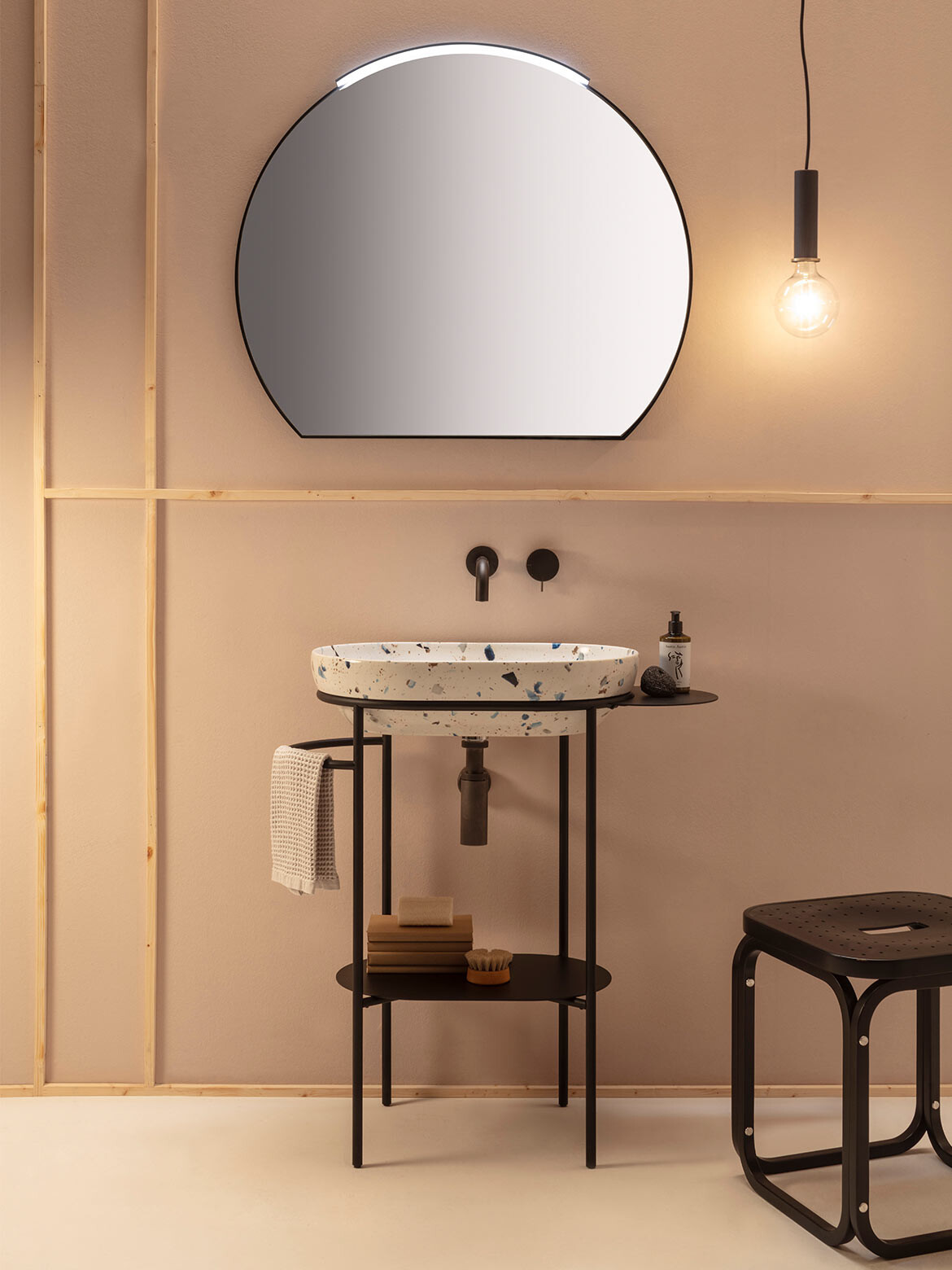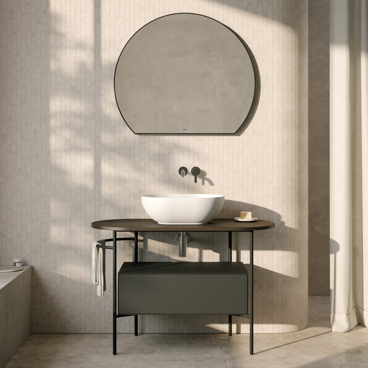 Настенное зеркало Ceramica Globo Opi — это версия, которая способна стать основным акцентом интерьера. Модель имеет стильные полукруглые контуры, придающие ей дерзкий характер. Располагая зеркало под различными углами, можно создавать множество архитектурных композиций.