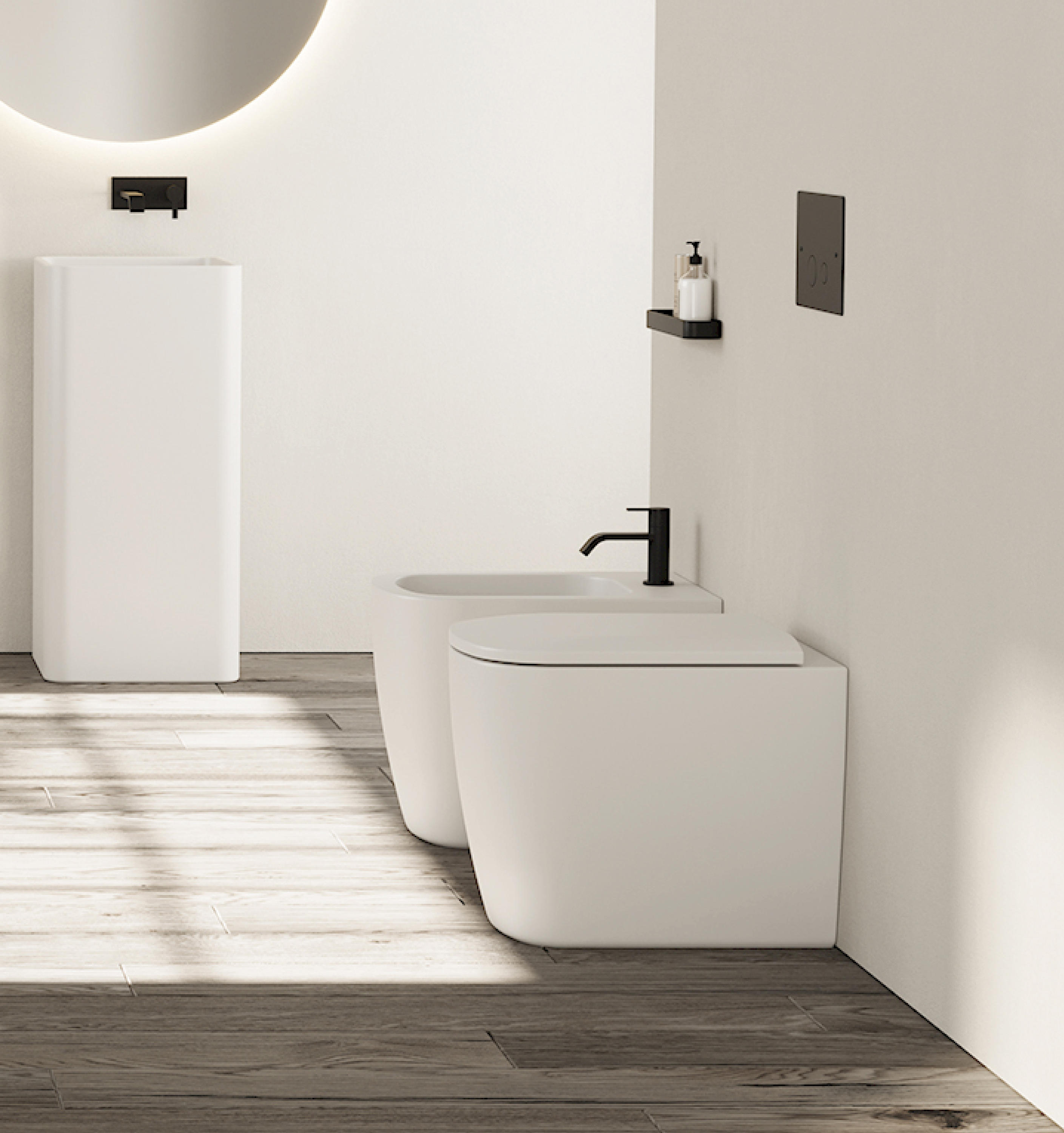 Напольное биде NIC Design Semplice Floor-Mounted Bidet — эргономичная версия, графичная форма которой идеально сочетается с прочной керамической поверхностью.