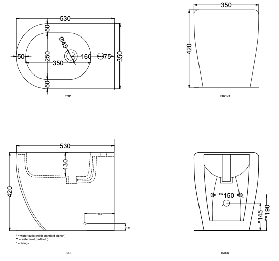 Напольное биде Smile Back to Wall One Hole Bidet